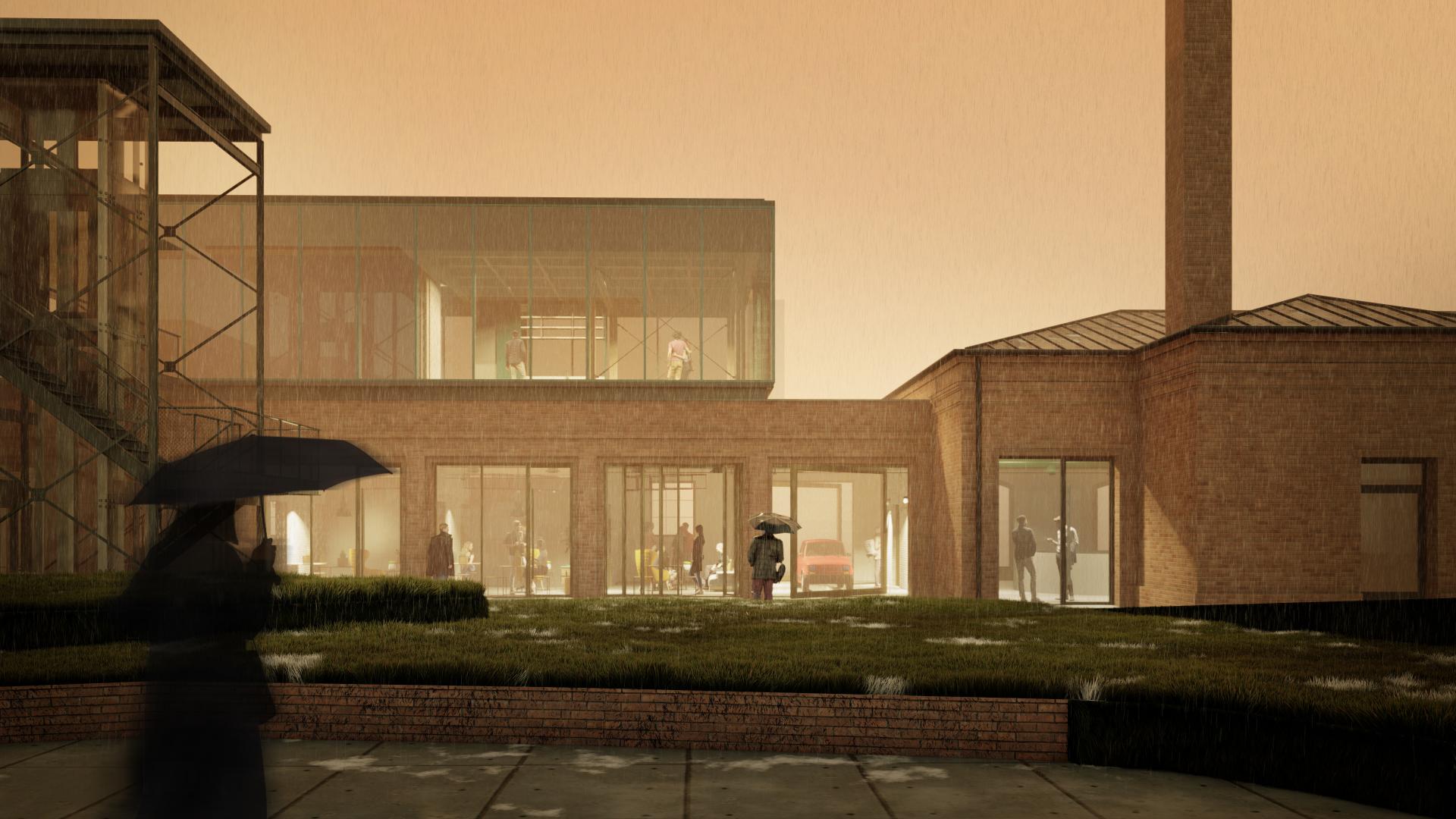 Aesthetic quality is reflected in the project through a new material collection and its application. In the form of glass columns from e-waste glass, recycling of bricks from demolition in the neighborhood and their use on the facades of new houses. The interior of the cultural center from the former factory will be equipped in "" with what people find at home. Which also creates social interaction of the locals. The architecture, its form, responds to the place and makes the cultural center of the factory stand out. The architecture has recognized support materials and the vast majority is from used recycled materials, waste or natural-based materials. Another point is the underground parking solution under the student housing. The entry points of the vertical communication underground are decorated with street art culture by local artists. Which again creates a feeling of studentism, people's creation, saving costs and involving local people in the interaction.
