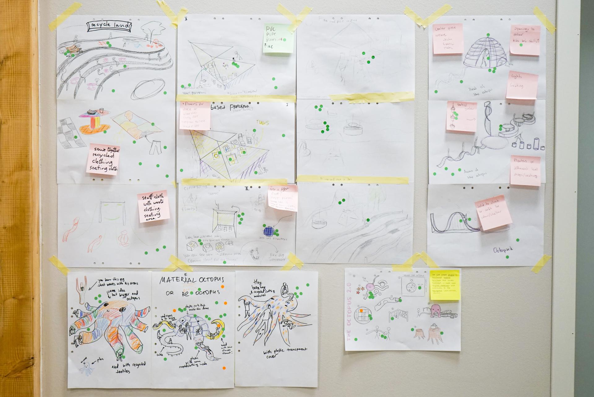 With some quick and dirty modeling, we had a clear design proposal. An octopus of different recycled materials and play areas for kids in the local park. Next we visited a recycling center, where construction and business waste is dropped off by trucks every day for sorting and processing. Most is burnt in a waste to energy plant in Umeå.
