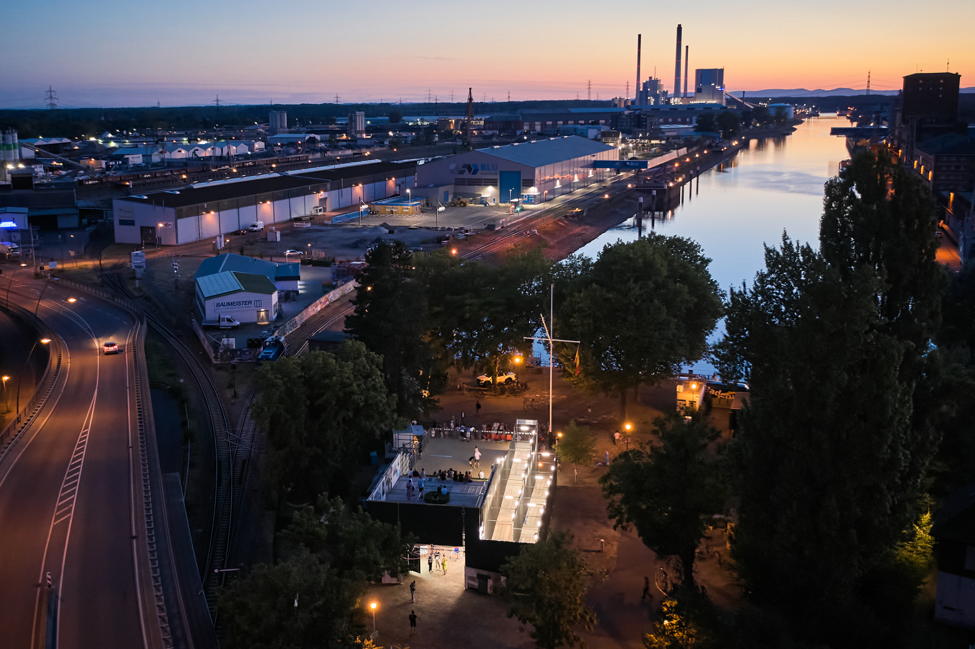 In our case the "flying architecture" in the form of a scaffolding palace temporarily becomes part of the Rhine harbour infrastructure. The area became a projection surface for urban and social visions of the future - and a venue for art, music, dialogues, workshops and gatherings at the bar. More than 5000 visitors from the city and abroad visited the port and gained a new perspective on Karlsruhe's infrastructure.