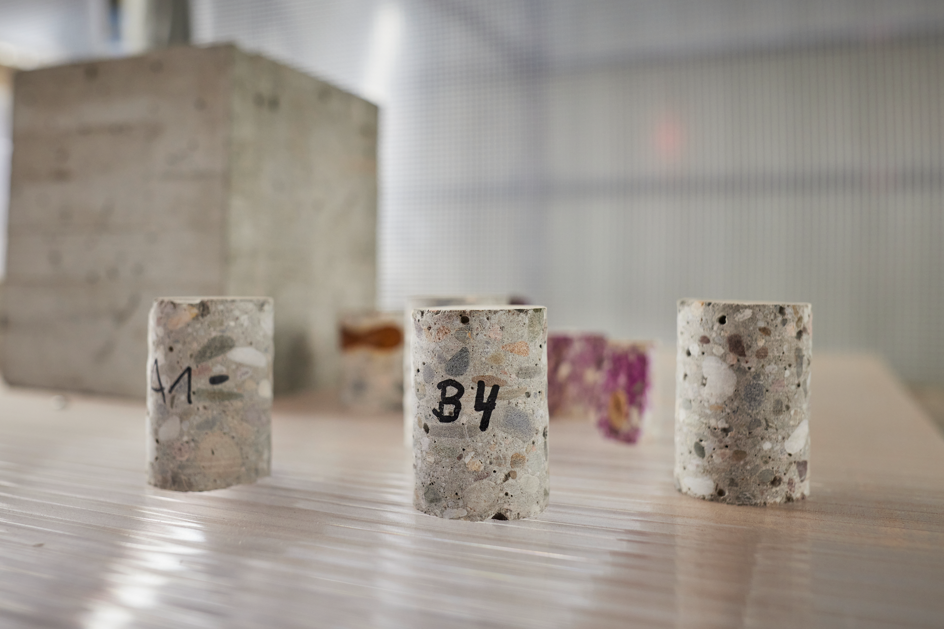 The centrepiece of the exhibition was a 25-metre-long material library on the subject of ′(infra)structures′. The work, created in cooperation with the KIT Innovation HUB, ato, Biodesign Lab HfG Karlsruhe and the artist Verena Schmidt, provided an insight into four ′narratives′ about structures. 32 exhibited materials could be examined and questioned in terms of their content, their form and aesthetics, their recyclability or, for example, their occurrence in nature. The library contained basic element for construction work up to sustainable design objects recently developed. The programme also followed a clear structure: on Thursdays there was an impulse lecture from science and art, followed by a dialogue round and a musical contribution. On Fridays (′Freitat′), the theme was illustrated in an ′abstract′ manner by performances and live concerts. Saturday was the ′dialogue day′ with 2-3 talk rounds on different topics. Here, too, the contents discussed were very diverse. There was a multidisciplinary exchange about urban planning, materials science, entrepreneurial, artistic and socially relevant (infra)structures. Every Sunday there were 1-2 free workshops. Here, too, the ′structures′ addressed were very diverse. For example, there were workshops on digital infrastructure, circular construction, biological structures or the surrounding harbour structures. There were special offers for children to experience the topic of ′science and art′ in a child-friendly way. For example, free design with plaster and aerated concrete was complemented by explanations of its behaviour (heat release, pore structure). This made for interesting and above all ′cross-border′ conversations in the exhibition space and also gave external visitors the opportunity to contribute their own thoughts and research ideas.