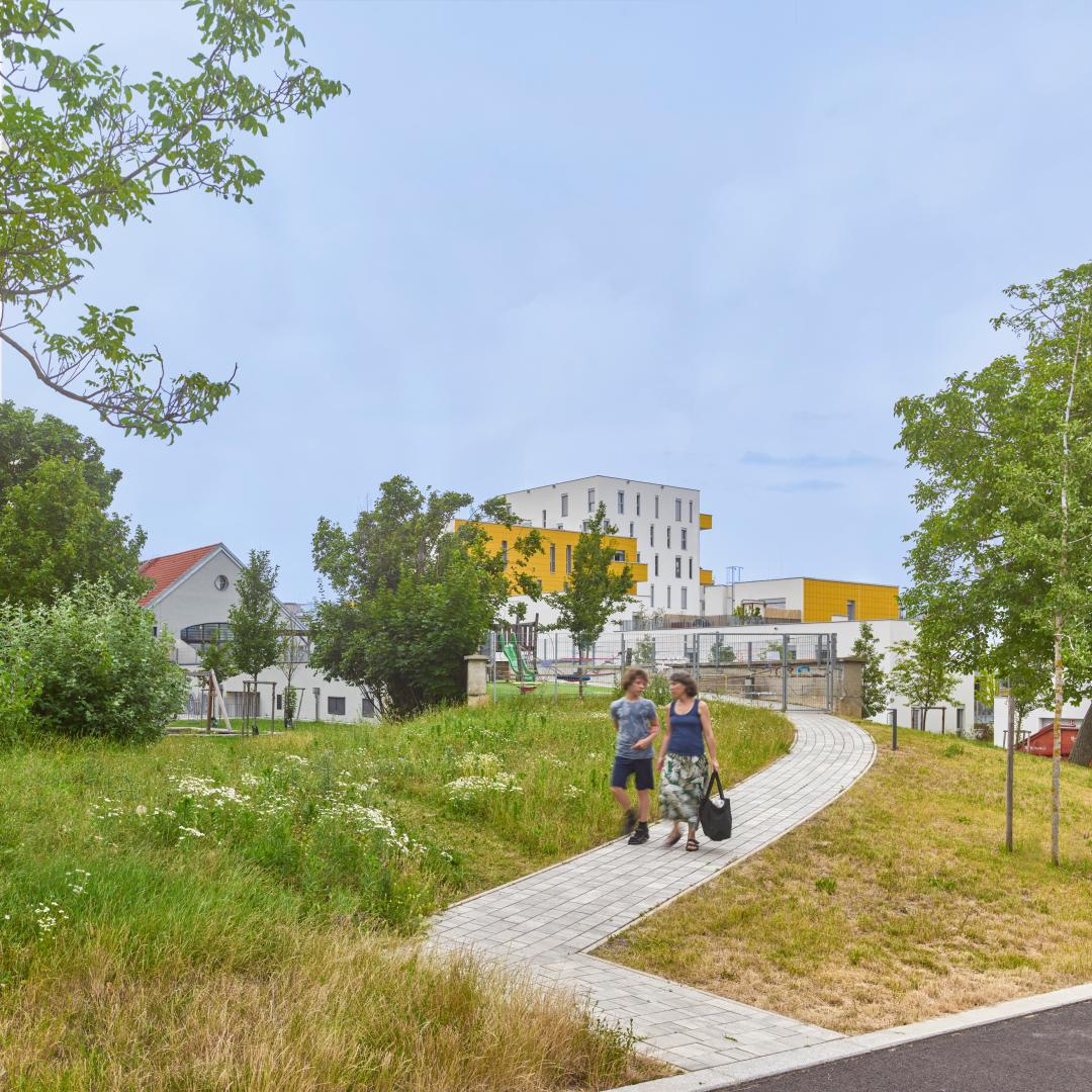 NEIGHBOURHOOD - The result is an innovative, sustainable and community oriented neighbourhood of eleven hectares that houses around 1,100 dwellings –as well as social infrastructure and community spaces– in the Meidling district of Vienna, which shows an alternative to conventional suburban expansions of European cities.
