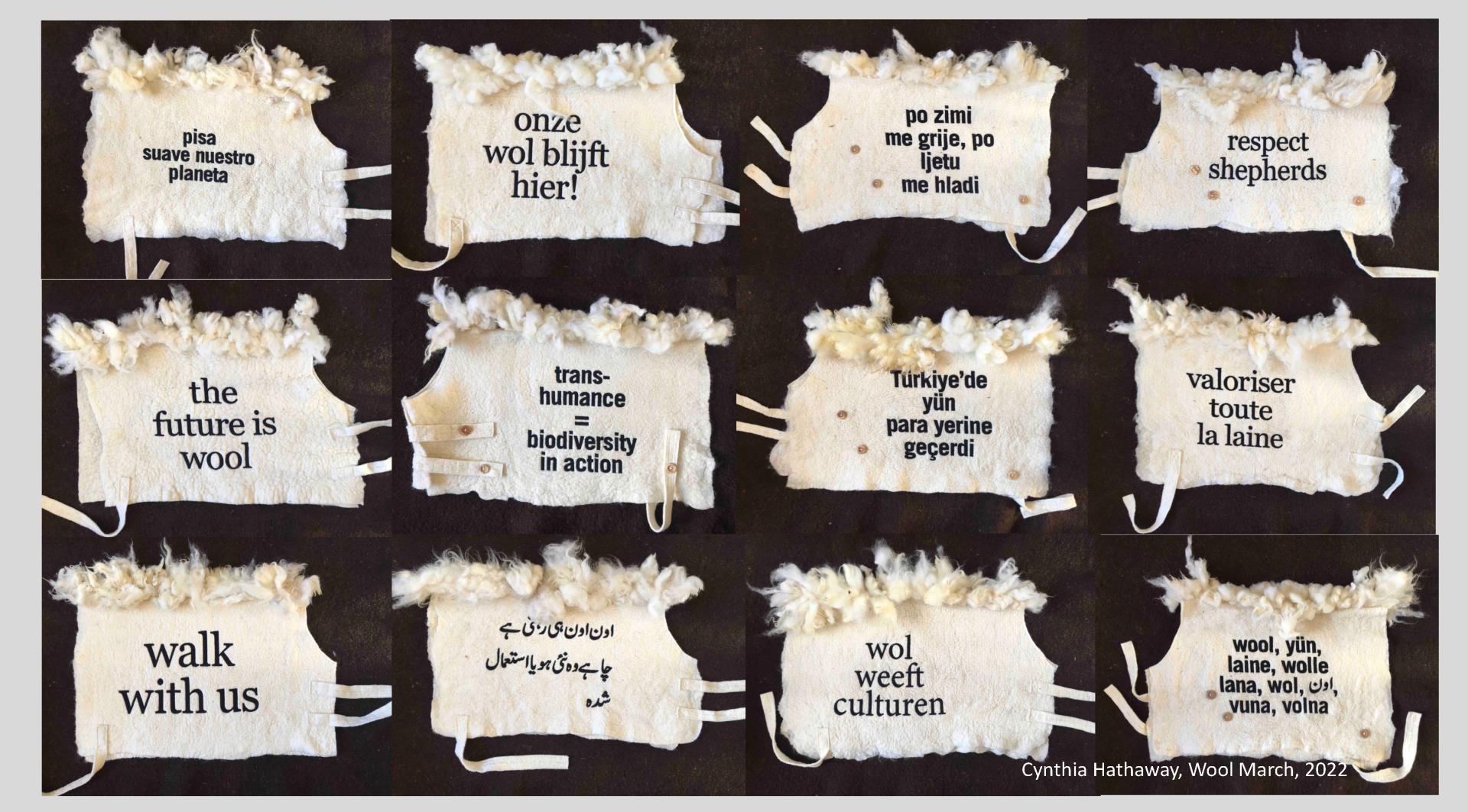 Wool is a global connector. Around the globe wool has been used for centuries to clothe and feed, create biodiverse landscapes, support local industries, and prosperity. Wool is renewable, biodegradable, has unmatched textile qualities, and when procured within a transhumance system, has environmental, economic and cultural benefits. In yet, wool is undervalued around the globe the moment it is grown on the back of a sheep. The textile industry spurred on by fast fashion and consumerism, focuses on cheap, and highly extractive materials. The industry is the second largest polluter after the oil industry. For example, cottons and polyesters, the textiles most used by the textile industry are large agents of climate change, producing mononculture-based land practices. Organic cotton takes up incredible amounts of water and land. Polyesters are not biodegradable, and are found to make up toxic global waste dumps. The production of textiles is also at the cost of human lives and welfare, with harsh working conditions, low pay, and toxic environmental damage. We can change the textile system, human and animal welfare, and the environment if we look at practices such as transhumance. This is a system of co-working together (animal, human, land) and the sharing, support of ancient skills rooted in multi-knowing (shepherding) and custodian relations. Many people find it incredible daunting to make a start, or make impact as the problems are so big and 'wicked', but by following the wool, we have a way in our own backyards. And as wool is part of a global chain of producers, our effect locally can have a ripple effect. Wool is like a necklace of pearls, each pearl a woolly node around the world, a context, a practice, a memory that crosses borders. Where we start a Wool March has effect here, there and everywhere. We just need to walk together down its paths.