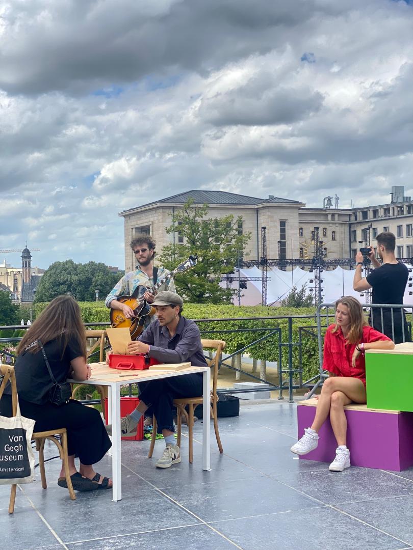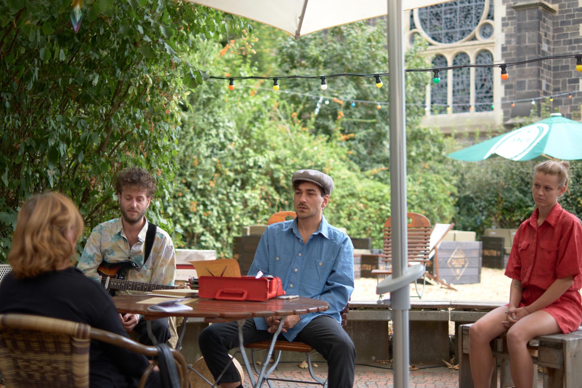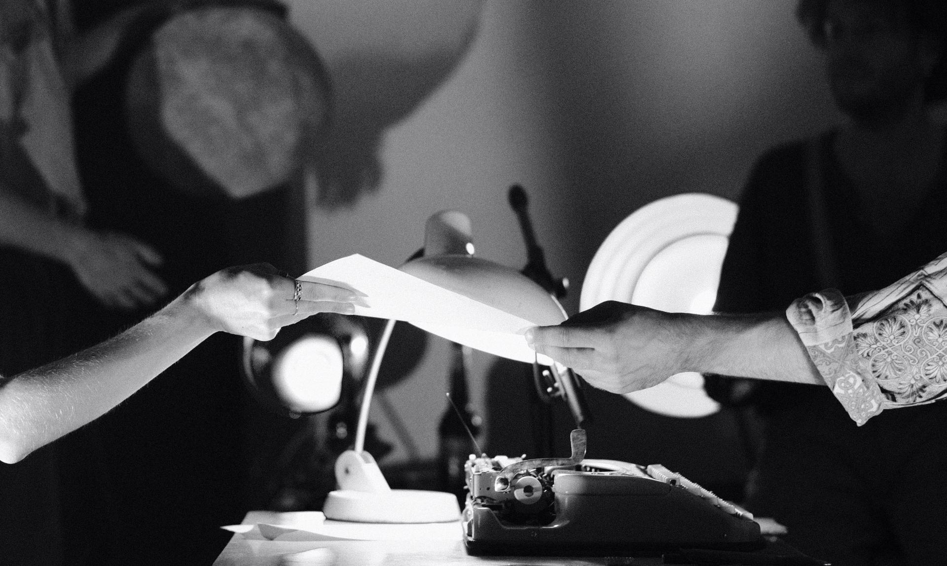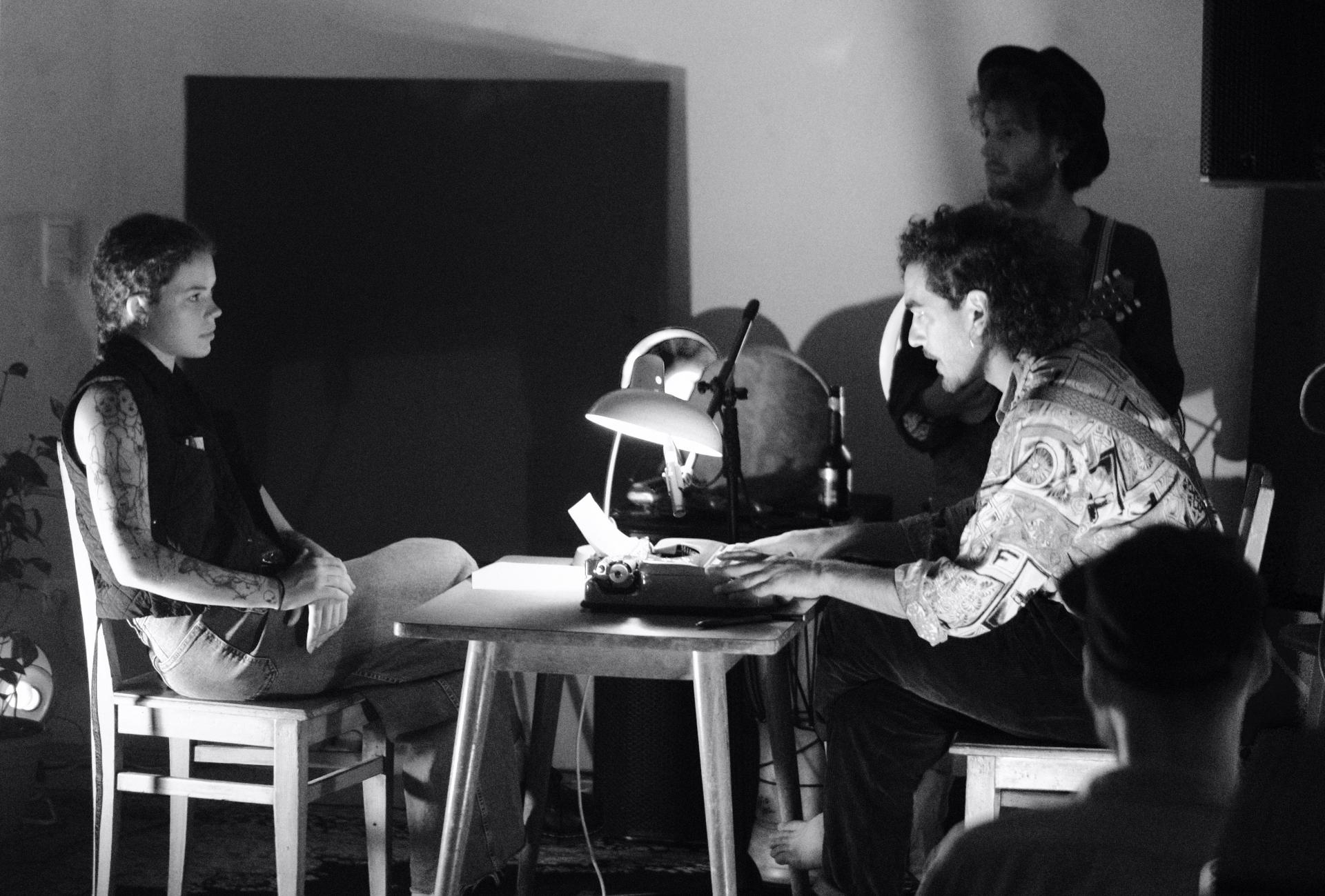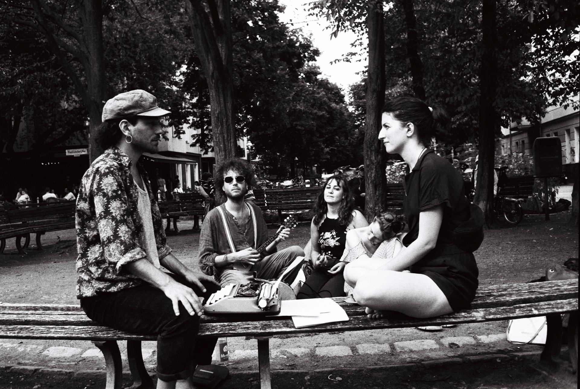 This project started solitarily in a bar in Vienna, the only bar that accepted me to sit at a table in a corner with my typewriter, once a week. Eventually I started to invite other artists to participate and portray people with their discipline. Then the invitations to different cultural locations began. And then the invitations to big festivals in different countries in Europe. I collaborated in the implementation with cultural institutions and organizations and mainly with artists from different backgrounds, nationalities and disciplines.