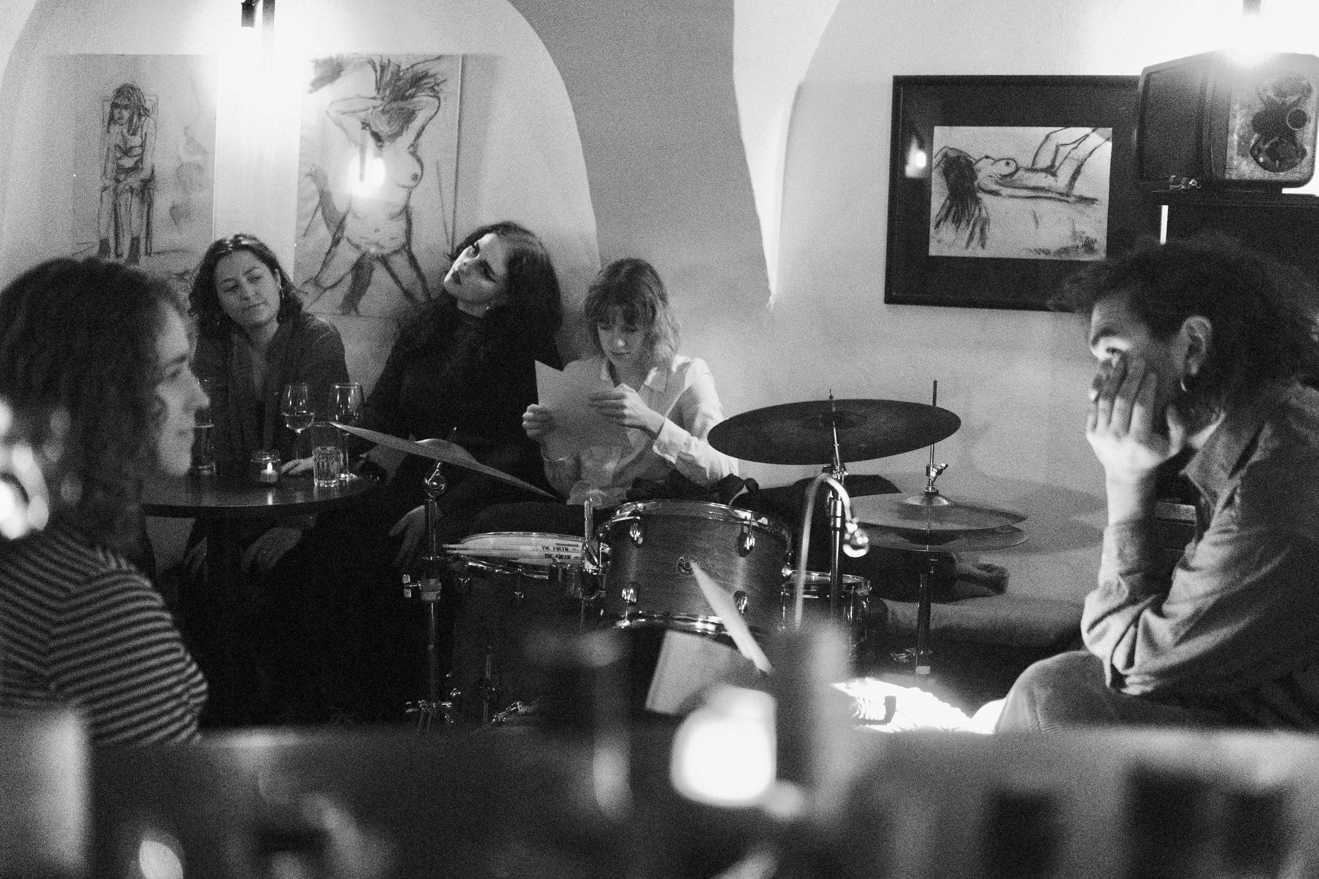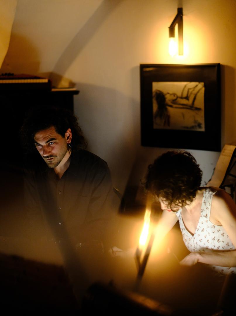 The experience is based on improvised live music and other art disciplines also improvised, which not only drive the moment and the words into an experience of trance and human interaction, but also tend to represent the person in their own language. It invites all kind of audiences to be part of it. It is art as a spontaneus act. The writer beyond his desk. Telling stories that skin tell. Life. In the moment. Creating without premeditation. Music is there to portray the person, to express their abstraction. And to create an ambience. And the dance, the movements that describe who is portrayed. The vibration of that person. Captured in movement. All of this together as a mirroring experience. In the moment, for the moment. Remaining as part of our experience, and in a paper.