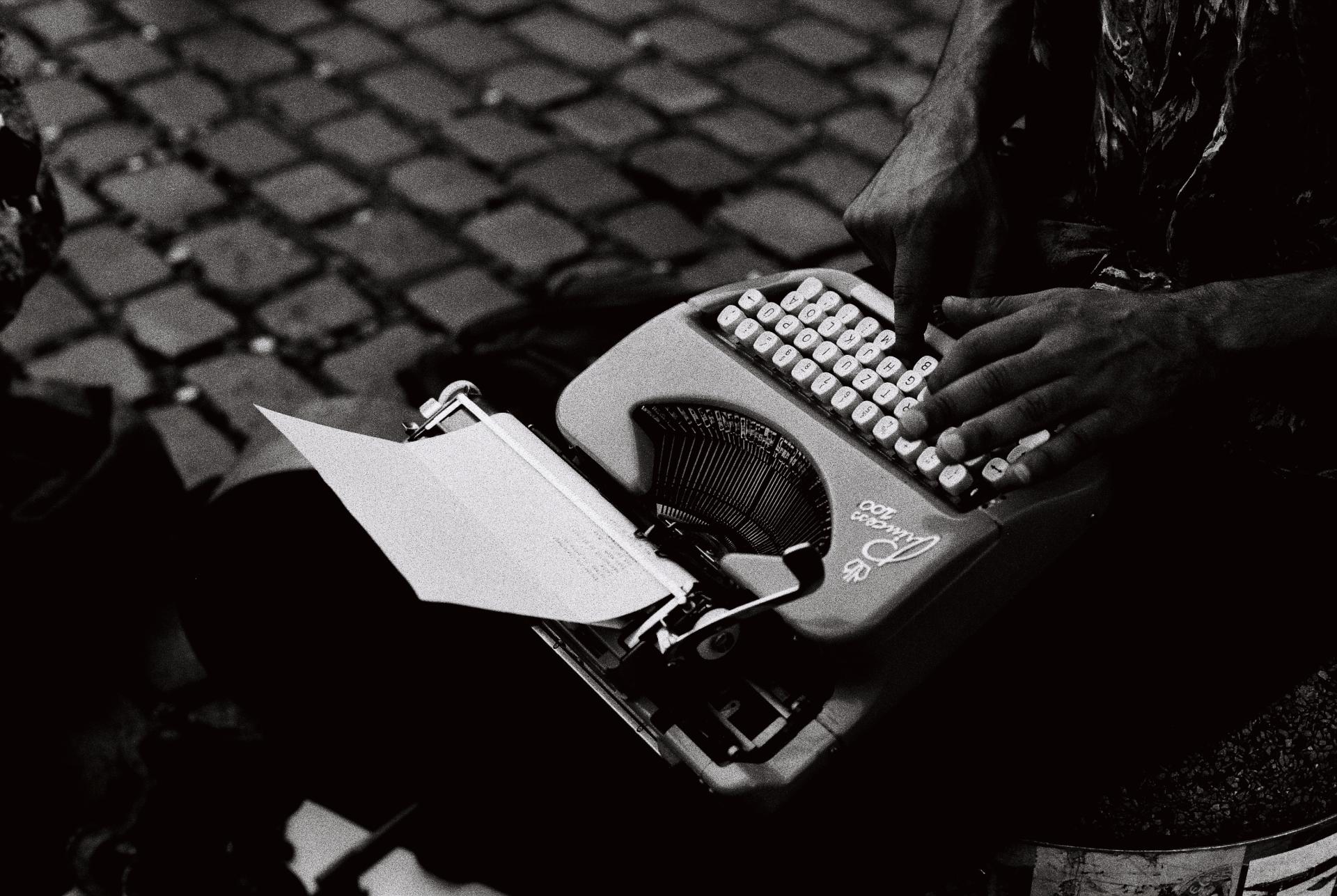 A Written Portraits is a participatory performance based on improvisation, where, as painters do, I portray a person improvising a poem with my typewriter, and the person receives the poem in a paper as a gift. The poems can be in Spanish, English and German. This performance began ten years ago as a casual experiment in a painter's studio in Buenos Aires and evolved until the form expanded to include artists from disciplines other than literature. It has been performed all over the world.