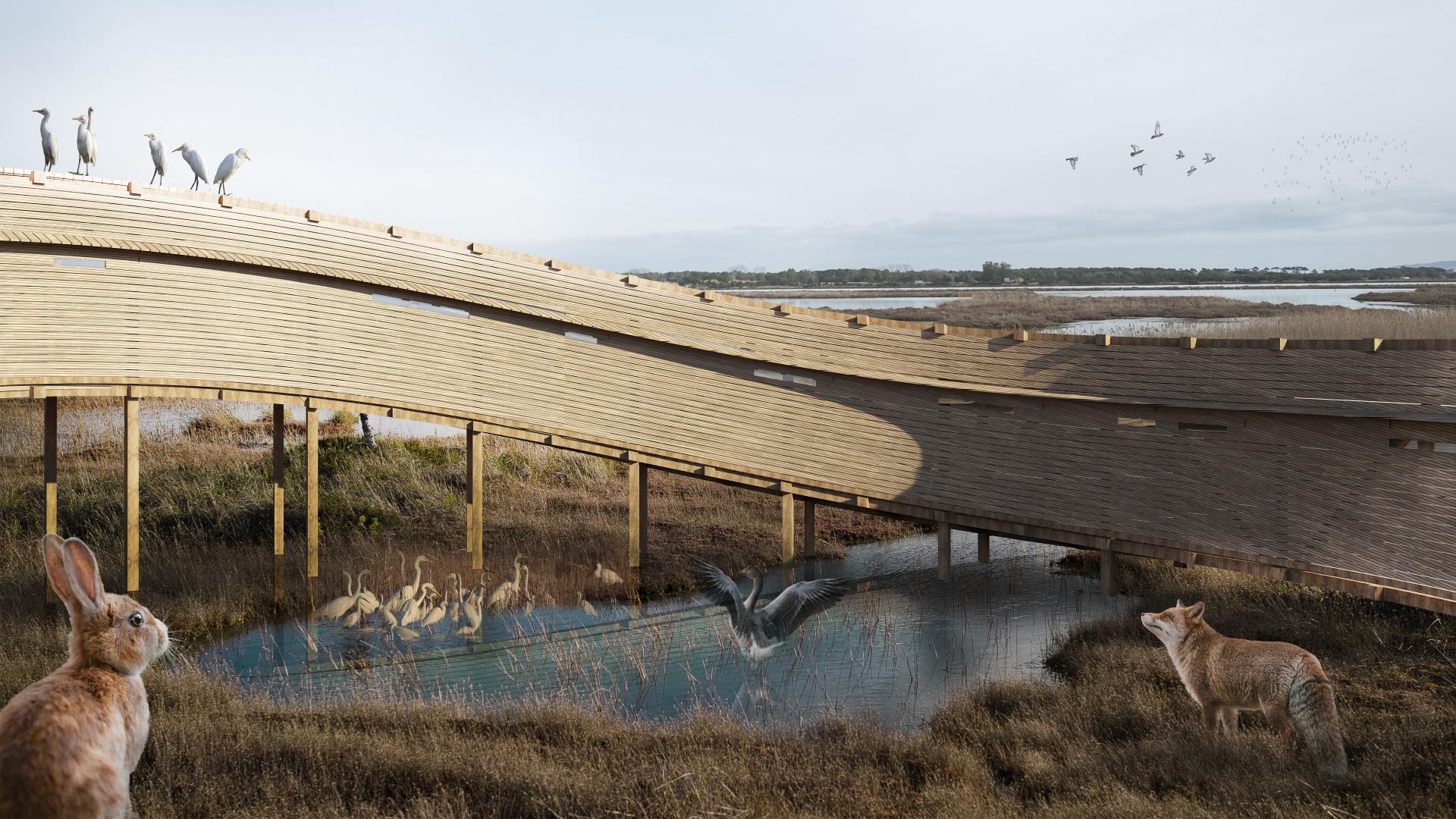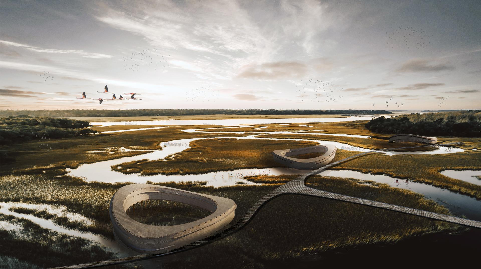 The concept that generated the idea started from the study of flamingo birds and how they follow their cycle in nature. 3 important stages are identified: birth and evolution in the terrestrial environment, dissolution and search for food in the aquatic environment and flight and migration to new locations proper to life. This whole cycle of their life creates a balance with the environment. Through this concept we created connections between the stages of the bird life cycle and the 3 distinct observation points. In order to better outline this concept of cyclicity of natural life, we wanted to offer people the experience of a continuous, uninterrupted observation path.