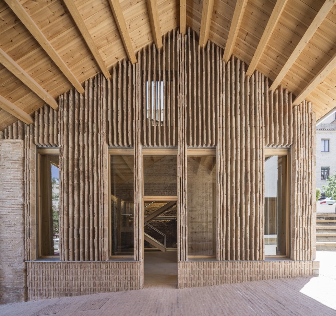 Local wood has been used both in the form of laminated wood for the new building and in slats from the old bleachers, recovered for use in finishes and lattices. The project also uses lime as a binder, a material whose use cycle is carbon neutral.