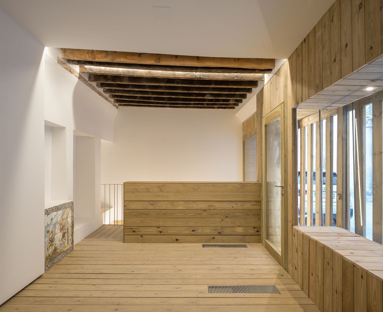 Each of the projects that make up the intervention in the Corral de Don Diego has its own singular character, but they all share the unity of the rehabilitation criteria and the material component that harmonises all of them and integrates them into the concepts of reuse (the lattices of recovered brick bring together the different natures of the buildings at 9 Trastámara Street and 3 Corral de Don Diego Square. The wood (recovered and new) integrates the square with the rest of the buildings. This local identity character of the refurbishment, which at the same time represents an advance in contemporary architectural language, but with respect for heritage, is another of the outstanding innovative points of the intervention.