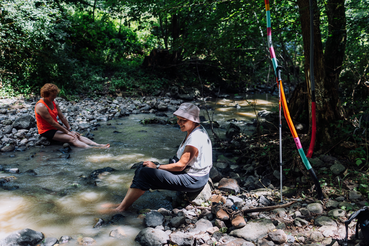 Four simple tent camps were built using sustainable principles, with showers constructed from recycled materials and operating with cold water to conserve resources. Partnerships with small Slovak companies who produce eco friendly amenities allowed us to distribute eco-friendly soaps, shampoos, and toothpaste to our participants, ensuring minimal ecological impact. Tent camps were lit with solar-powered lighting, and each participant carried a portable solar lamp during hikes to later use it the camp at night.