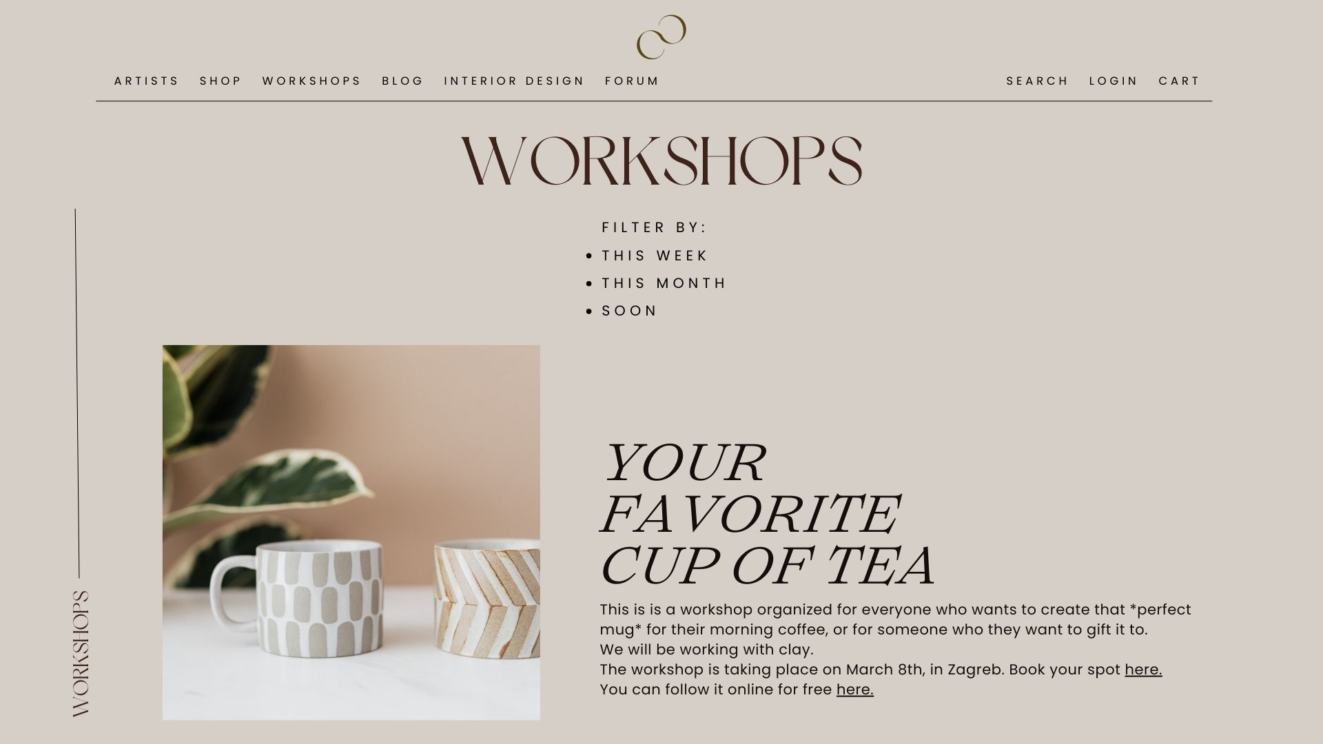 Designera's CraftCircle would offer a visually engaging experience, celebrating highly aesthetic design while promoting cultural diversity, sustainability and craftmanship. The platform’s design and cultural focus are rooted in three core objectives: 1. Promote Beautiful, Sustainable Design: CraftCircle highlights designs that are not only functional but also aesthetically beautiful, long-lasting, and environmentally responsible. These are carefully selected by an expert interior designer. The virtual gallery showcases high-quality designs and creative processes, while the platform's intuitive interface enhances user engagement, encouraging exploration of sustainable practices. 2. Cultural Benefits and Diversity: CraftCircle celebrates cultural diversity by featuring regional artisans and promoting traditional crafts alongside contemporary design. The platform highlights Croatia’s cultural heritage and encourages users to explore various design practices. It fosters collaboration, amplifying the unique characteristics of different artistic cultures and enriching the user experience with diverse design techniques. This inclusive approach allows users to connect with artisans from various backgrounds. 3. User-Centric, Intuitive Experience: CraftCircle creates a seamless platform for both beginners and professionals to easily discover content, browse the marketplace, or participate in workshops. Its simple navigation and filtering options help users find specific skills, such as upcycling or sustainable materials. The platform integrates workshops, blogs, and the marketplace into a cohesive design, providing a smooth user journey. The virtual gallery and marketplace create emotional connections to sustainable and culturally significant works, while interior design service help in choosing home goods. Designera's CraftCircle exemplifies how a thoughtful and intuitive design can be a catalyst for beauty, sustainability, inclusivity, and cultural appreciation.