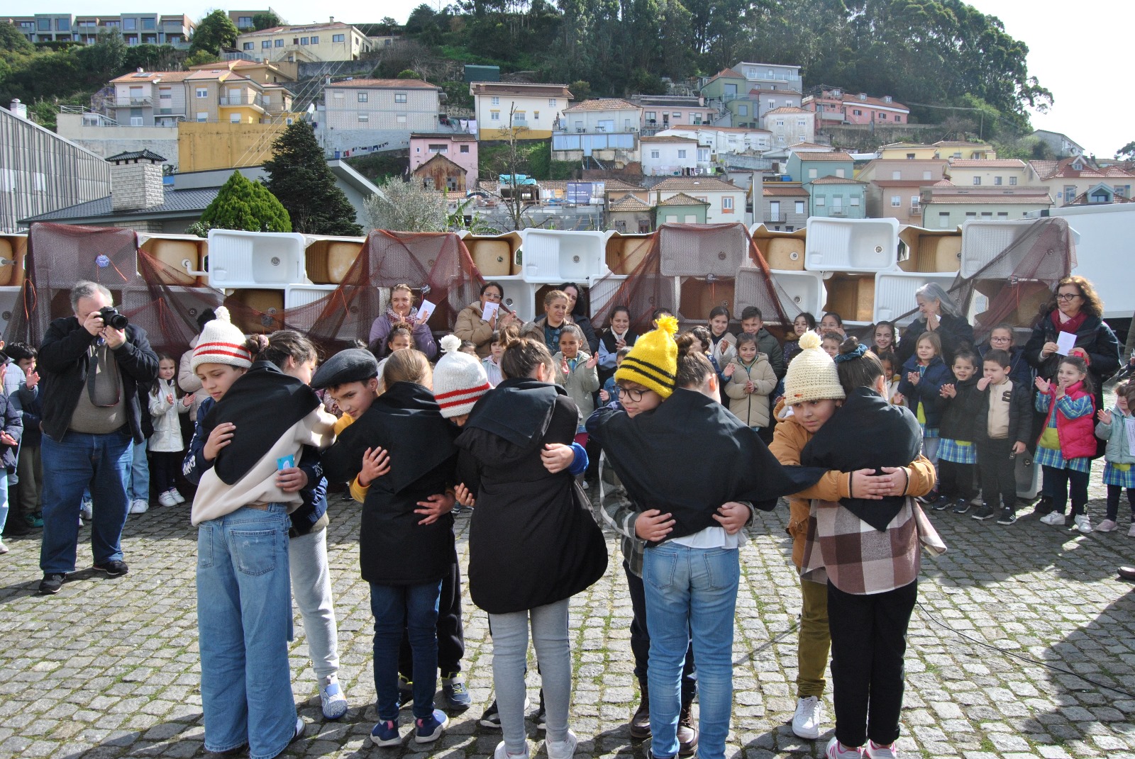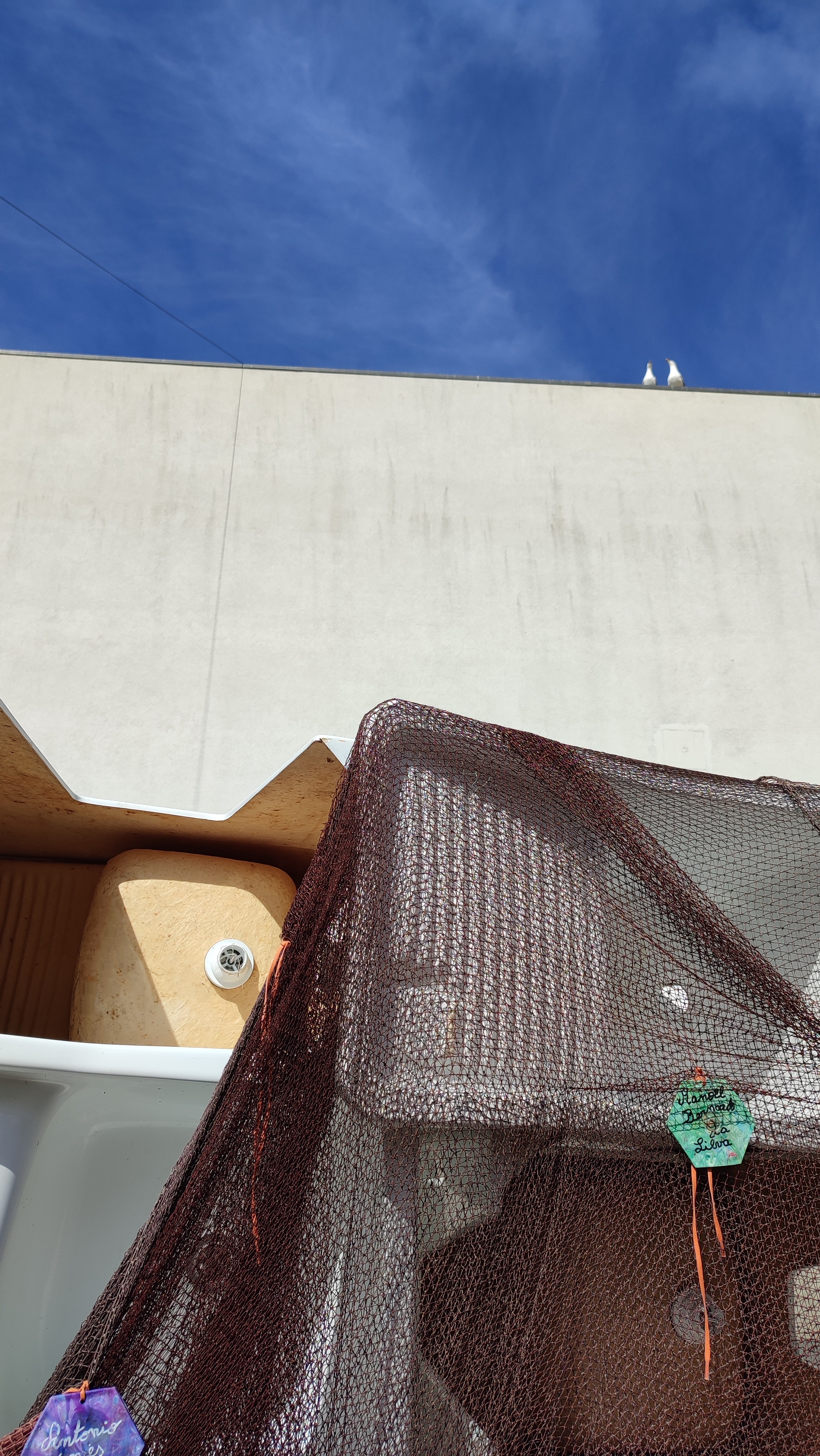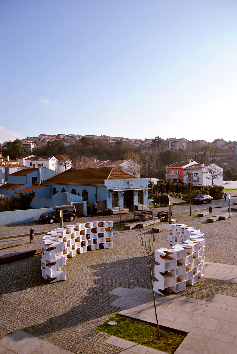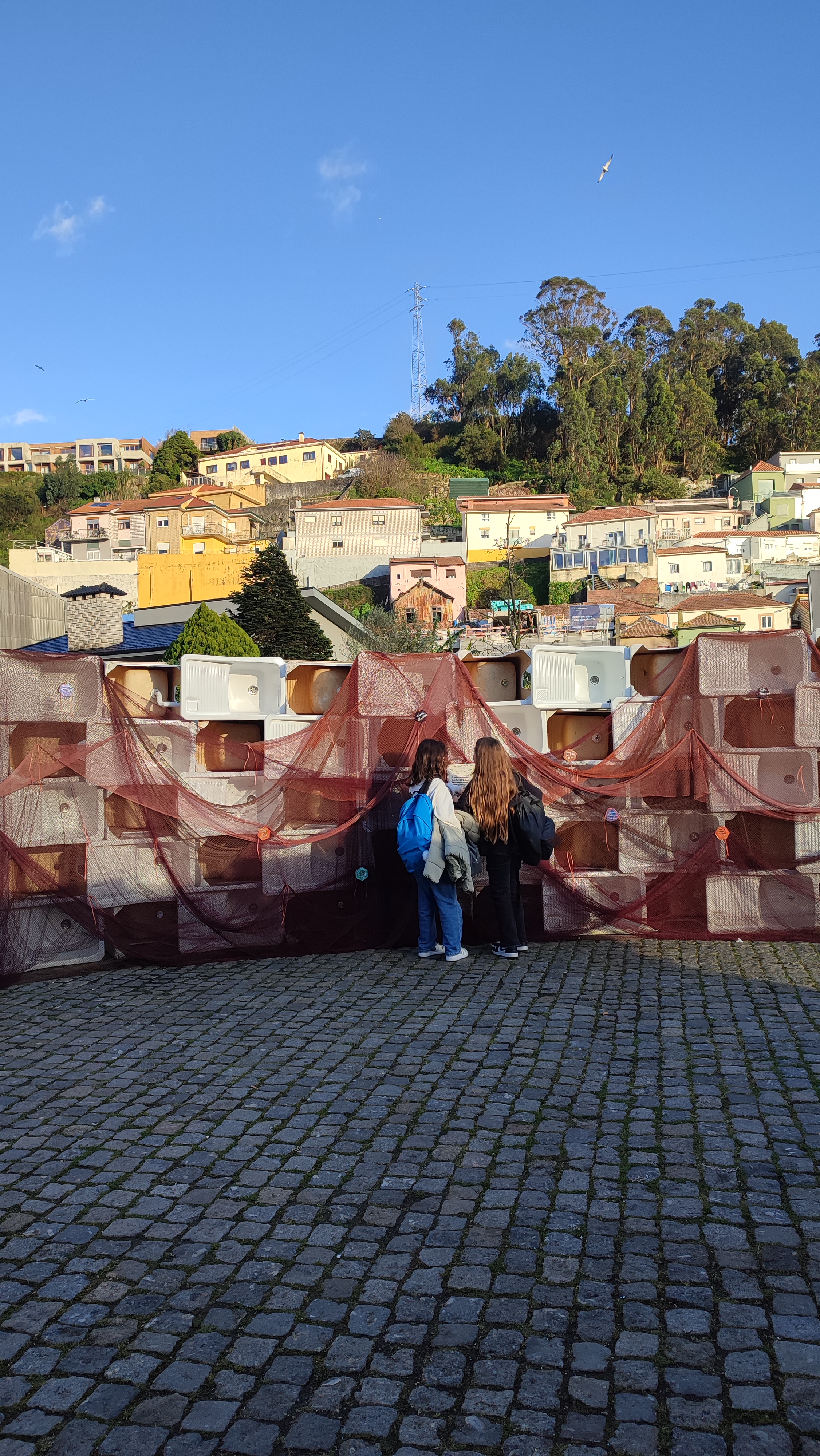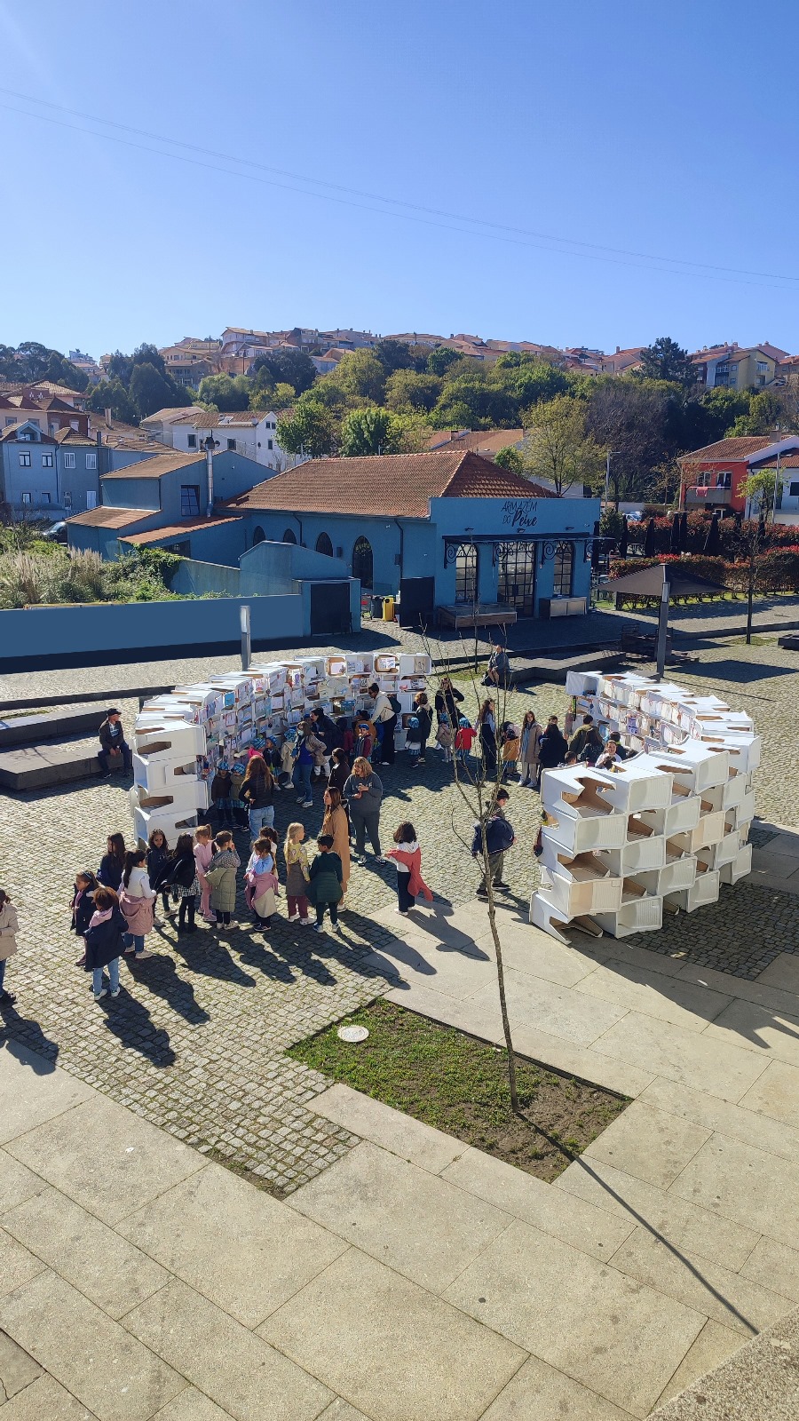 The project took an everyday object in traditional Portuguese houses, the washing tank, and elevates it into a sculptural and symbolic form. Once associated with domestic labor and shared social rituals, these tanks are reassembled into a striking urban landscape that invites contemplation, interaction, and participation. The result is an installation that is both unexpected and deeply familiar, challenging perceptions of what constitutes art in public space.The installation was conceived as a collective canvas, where local residents and schoolchildren were invited to contribute artistic elements. Through workshops, participants and students created collages, drawings, poetry, and personal testimonies that were later incorporated into the artwork, turning the structure into a patchwork of community voices. Additionally, discarded fishing nets and repurposed textiles were integrated into the installation, adding layers of color and texture that visually connected the piece to Afurada’s rich maritime identity.