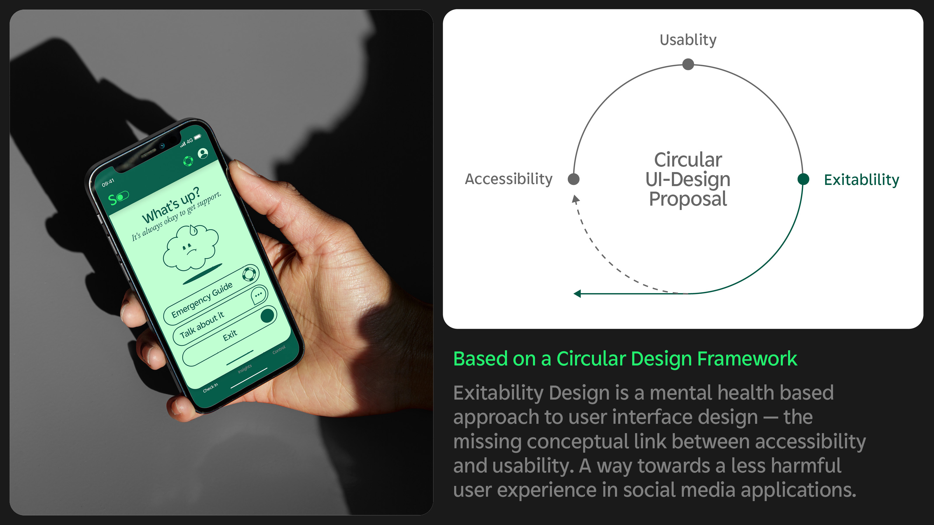 This process is guided by a newly developed design principle called "Exitability Design"—a concept that integrates accessibility and usability within a circular framework, ensuring that digital platforms not only facilitate easy entry but also provide seamless, low-barrier options for users to disengage.
