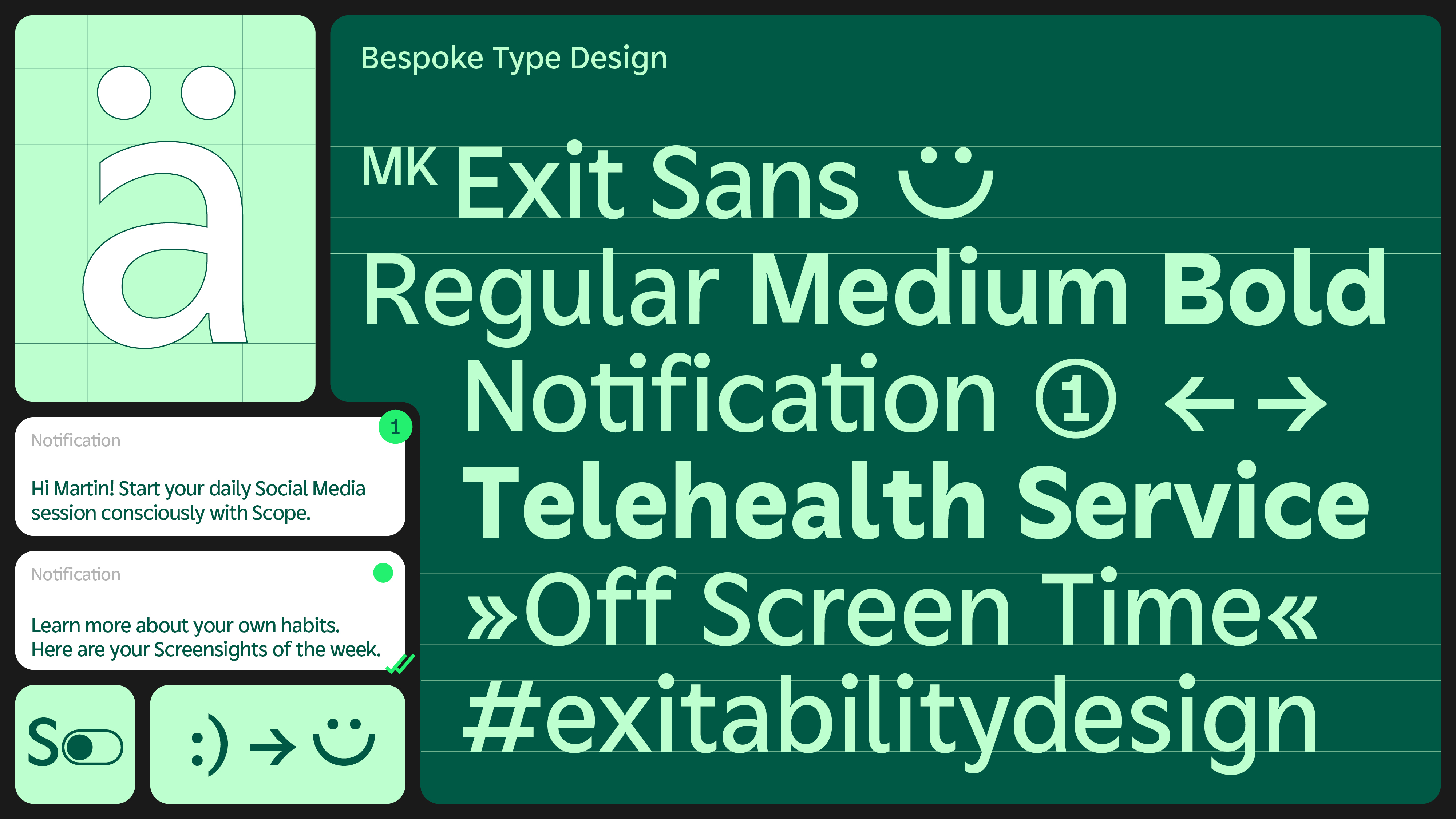 The concept for Scope was initially developed as an academic thesis project at the University of Applied Arts Vienna, combining both written research and practical design implementation. This approach enabled a deep exploration of the psychological impact of social media, supported by expert consultations across the mental health and medical fields.