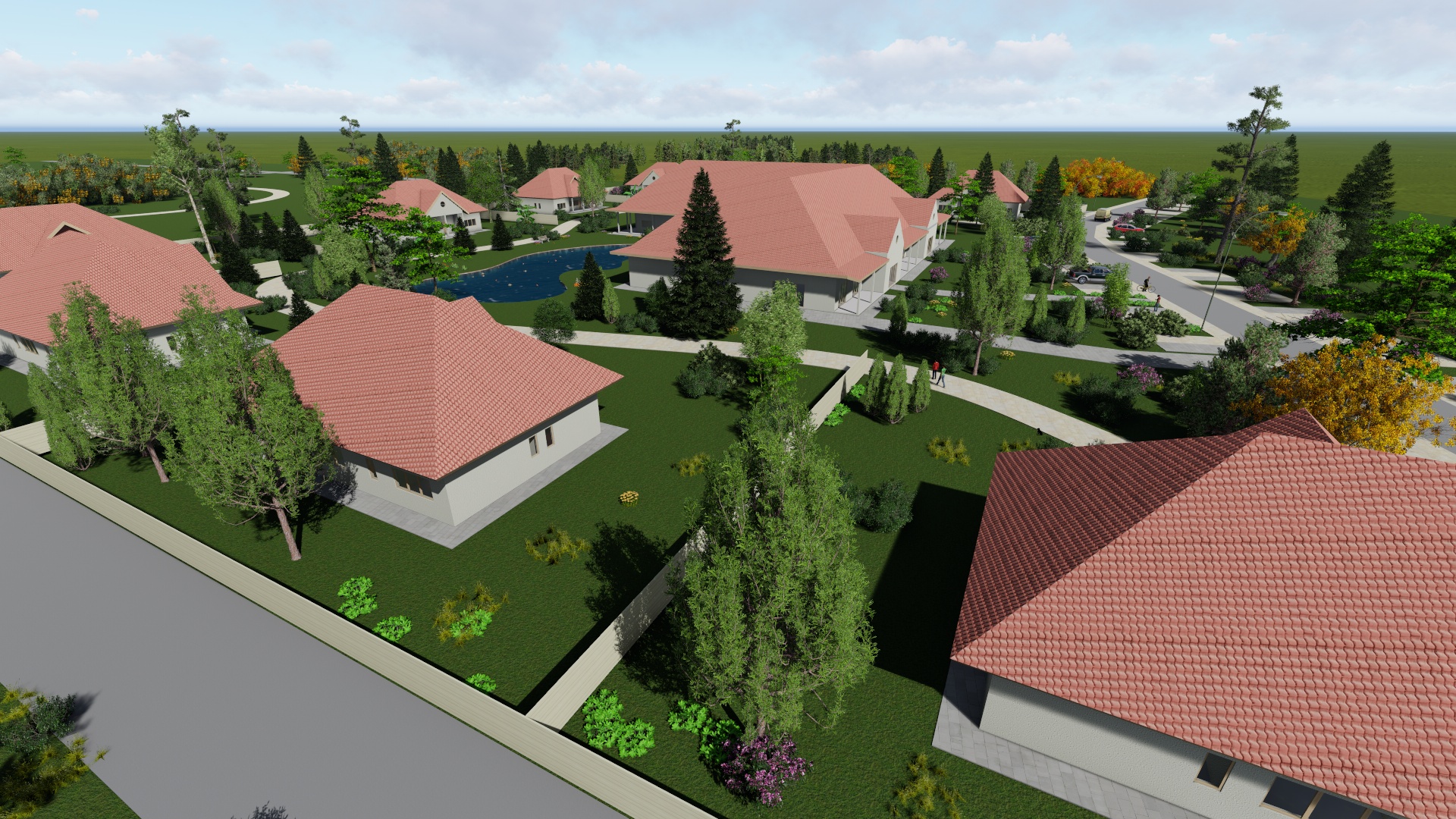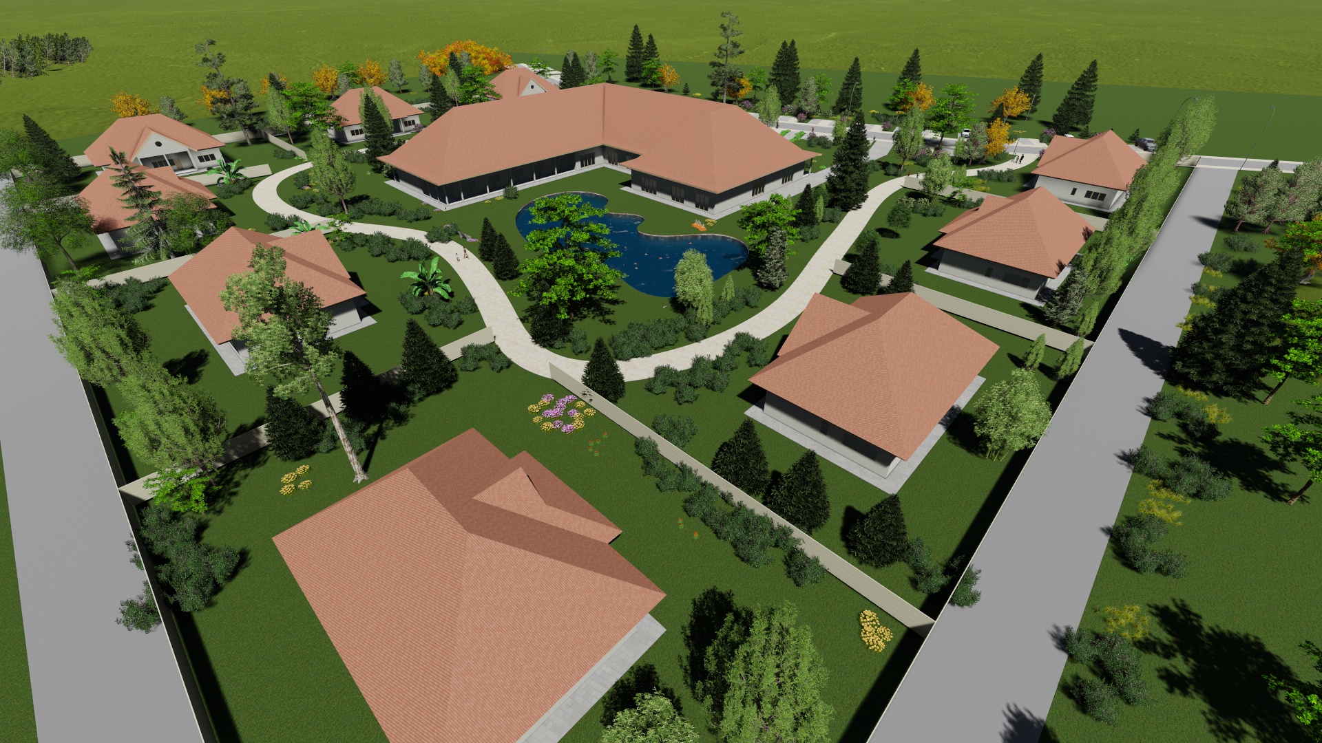 Based on the latest statistics, Europe's demographic indicators show an ageing structure. Most elderly people, especially women, live alone in their households. Social care facilities are overcrowded and people choose institutional care only under pressure, because most of them do not meet the needs of modern people. Liget Park, on the other hand, offers an alternative community housing solution where people are happy to move in. Pensioners who are still active and able to take care of themselves would also like to move in here. We design comfortable, handicap-accessible, human-scale apartments, where family members are happy to visit, because the environment provides an attractive opportunity for families to meet. In Europe, there is a tendency for people who have reached retirement age to move from the west to the eastern regions. For them, Hungary is an excellent destination with its low prices and wonderful environment. Unfortunately, people moving away can often feel isolated. The Liget Park Project is also trying to change this. As the population of Jánoshida could also benefit from the advantages brought by future residents, so the inhabitants of the settlement regard the elderly arriving to us as an asset. Instead of isolated, crowded, reserved nursing homes, we have developed an open, livable concept based on community values. People living here can actively spend their days as appreciated members of a community, so the number of their precious years of life is expected to increase. The resulting housing model will put less strain on the social care system, as care for the elderly will only be required as a last resort. A third innovative approach is that we plan a separate residential unit in the main building so that adults in need of care can spend shorter periods in Liget Park, under the supervision of professionals, so the family members caring them can also be freed from the burden of care for 1-2 weeks.