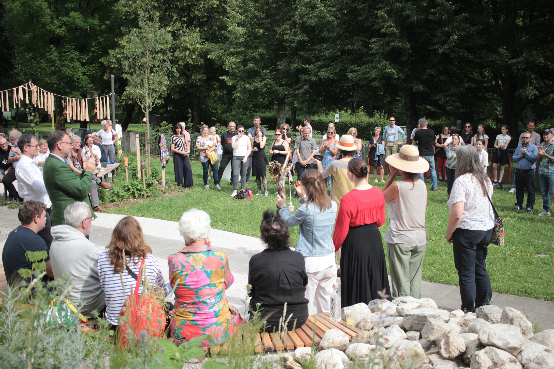 One aspect that was added to the project in the final phase of realisation is the opening up of opportunities for people not being part of the school to get involved. This primarily refers to neighbours and people from the Bad Ischl municipality respectively the Salzkammergut region who are positively attached to the Garden of Moving Time. A separate area in the garden has been set aside for them to further expand the biodiversity with donated plants. Active citizens got involved before the garden was completed and opened, providing plants such as young lime tree shoots and seeds, but also co-creating the garden's inauguration ritual.