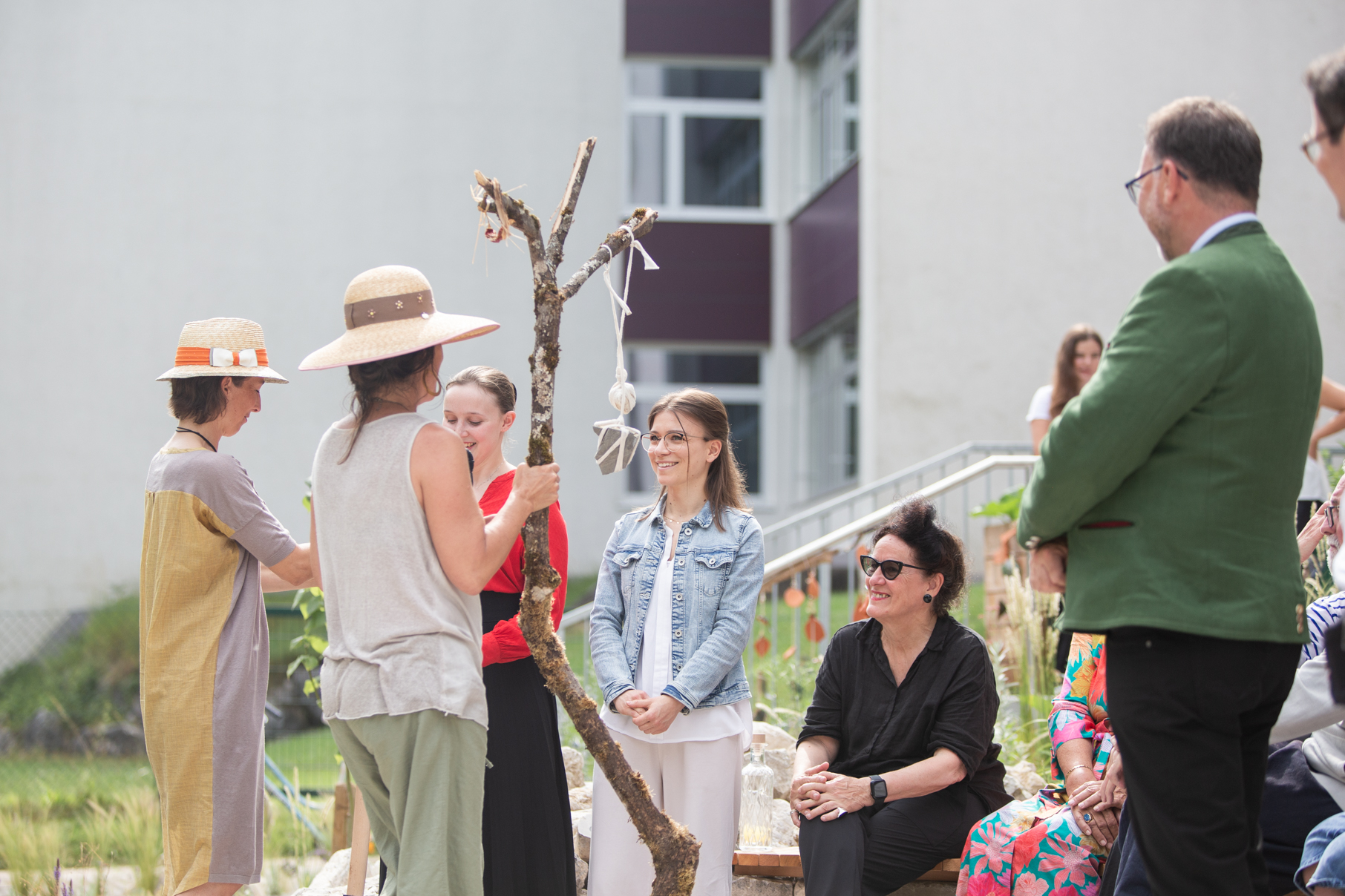 Caring for nature and the environment became another central principle. The materials used in the planning and horticulture were inspected for sustainability and mainly sourced regionally. The individual areas of the garden were dedicated to different agents—both human and other-than-human. Nature is welcome as teacher in the new green classroom.
