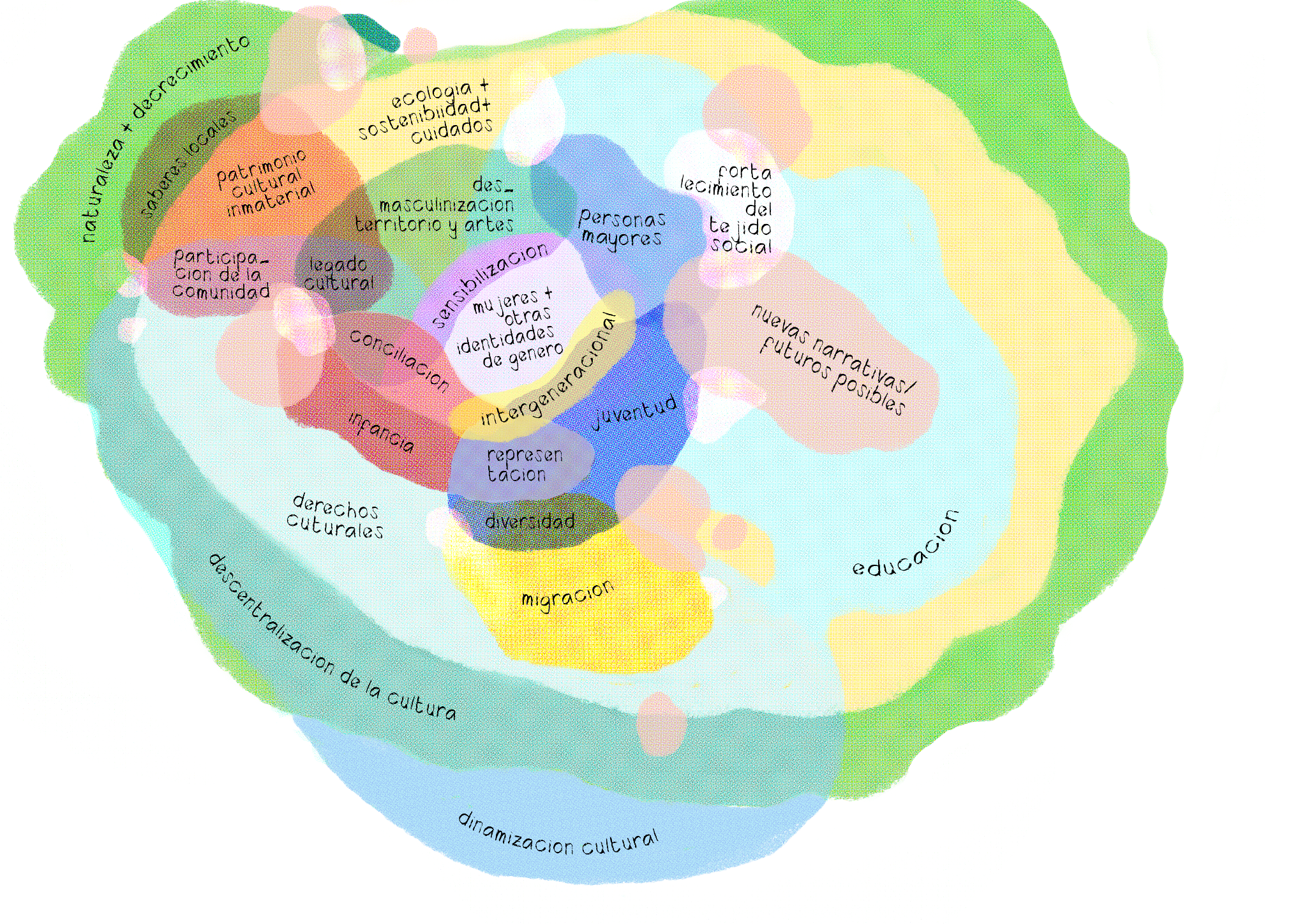 - Artistic expression as a driver of transformation and a tool for dialogue within and with the local community, constructing and experimenting with methodologies from artistic mediation