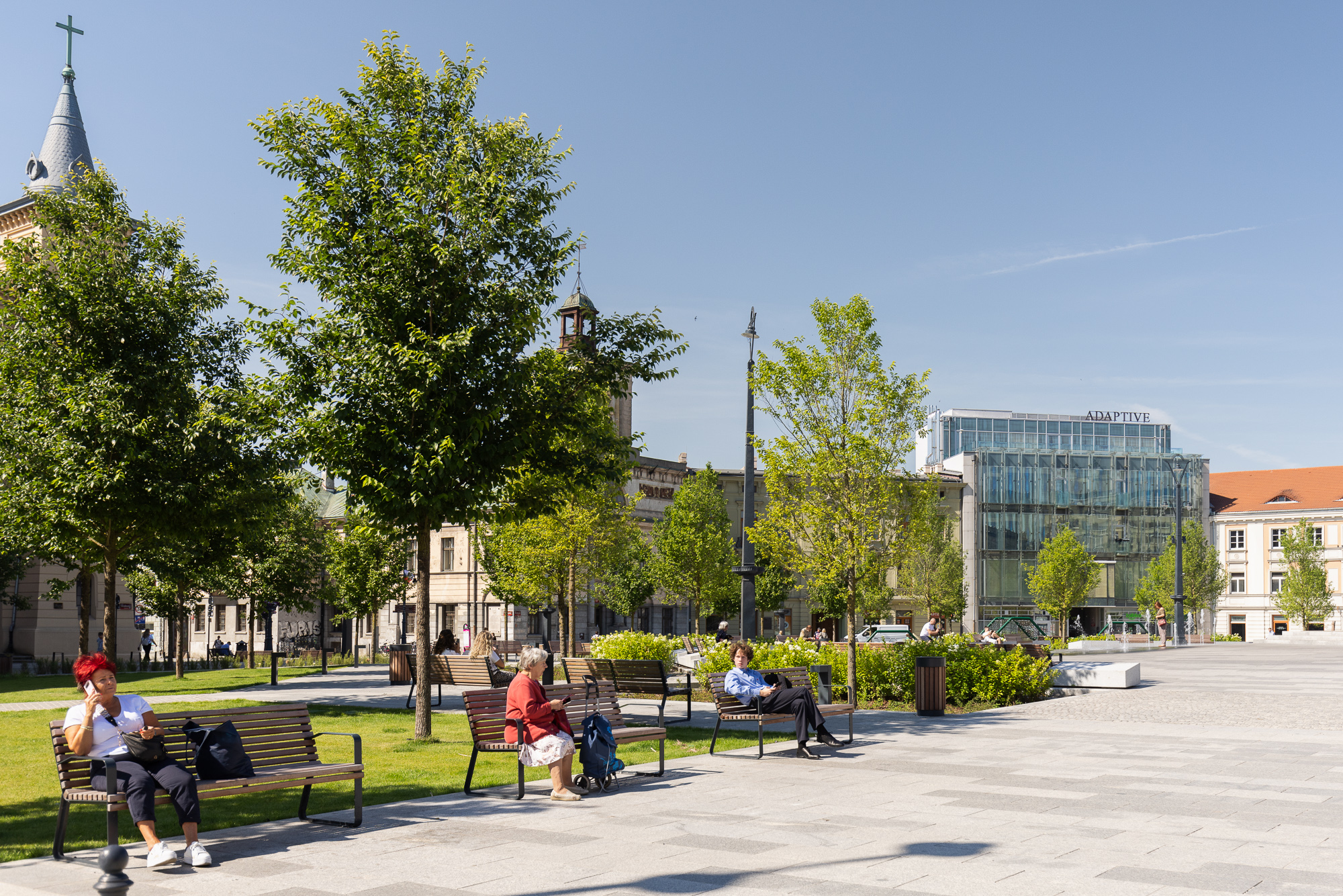 The initial criticism of the bold greening of the square—unprecedented on a national scale despite a significant shift in the shaping of public spaces—subsided when the completed project became one of the residents' favorite places, shifting the focal point of the city center.