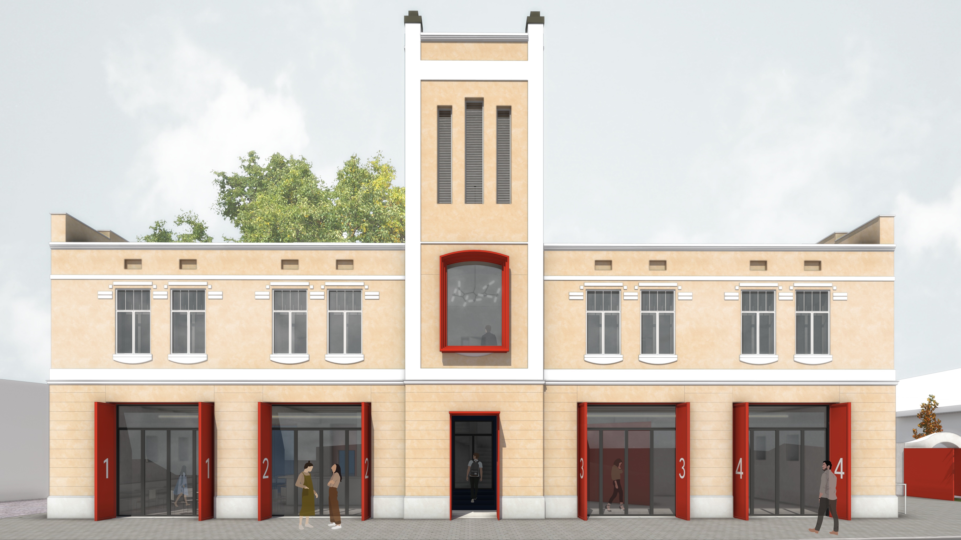 • Adaptive reuse of a historic building: By revitalizing the former fire station, the project minimizes the need for new construction, preserving the building’s historical value while giving it a new, functional life. This adaptive reuse strategy reduces construction waste and energy consumption associated with new buildings, making the project a sustainable choice in preserving local heritage.