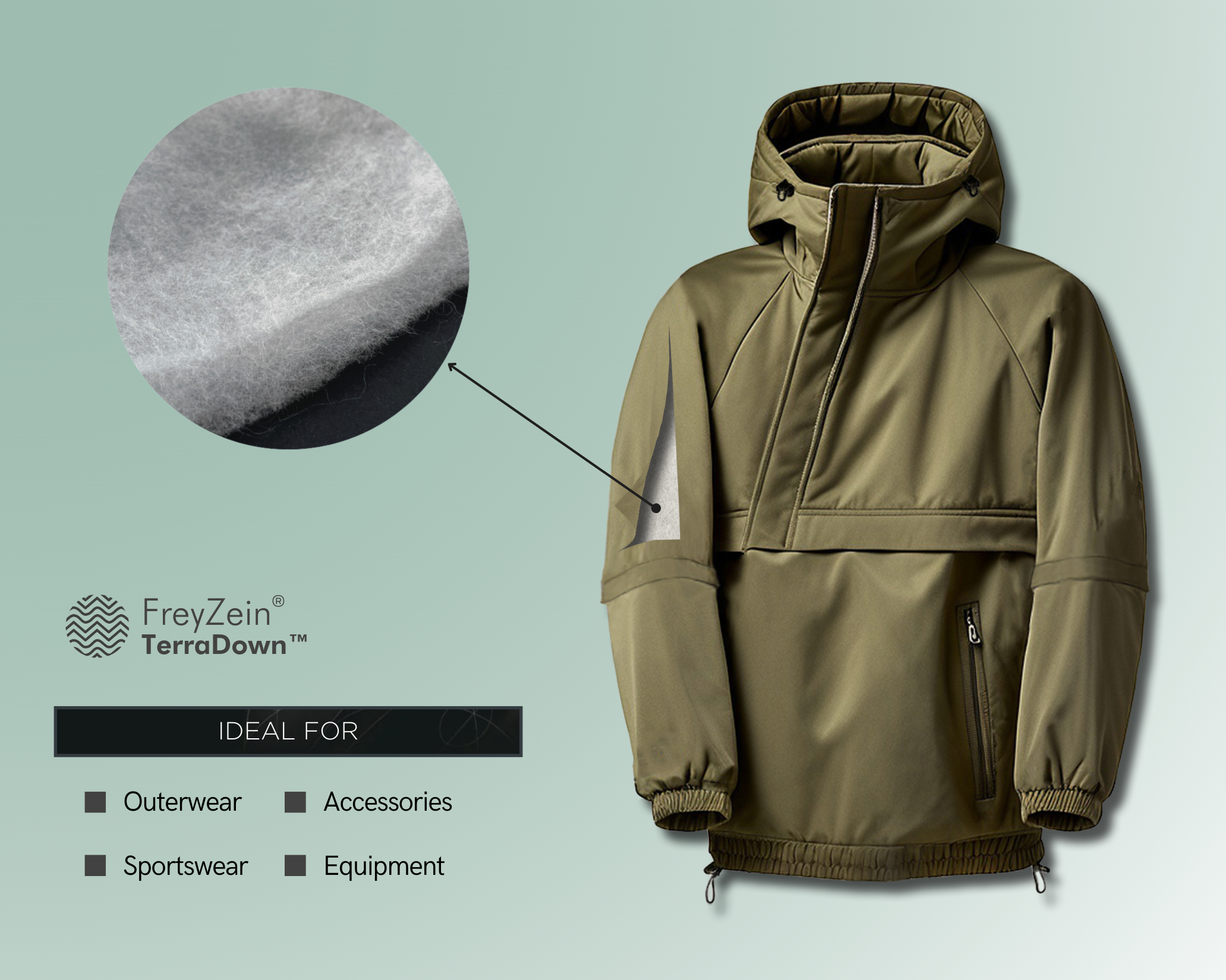 TerraDown™ insulation can replace petrochemical fibers in fashion, furniture, etc.