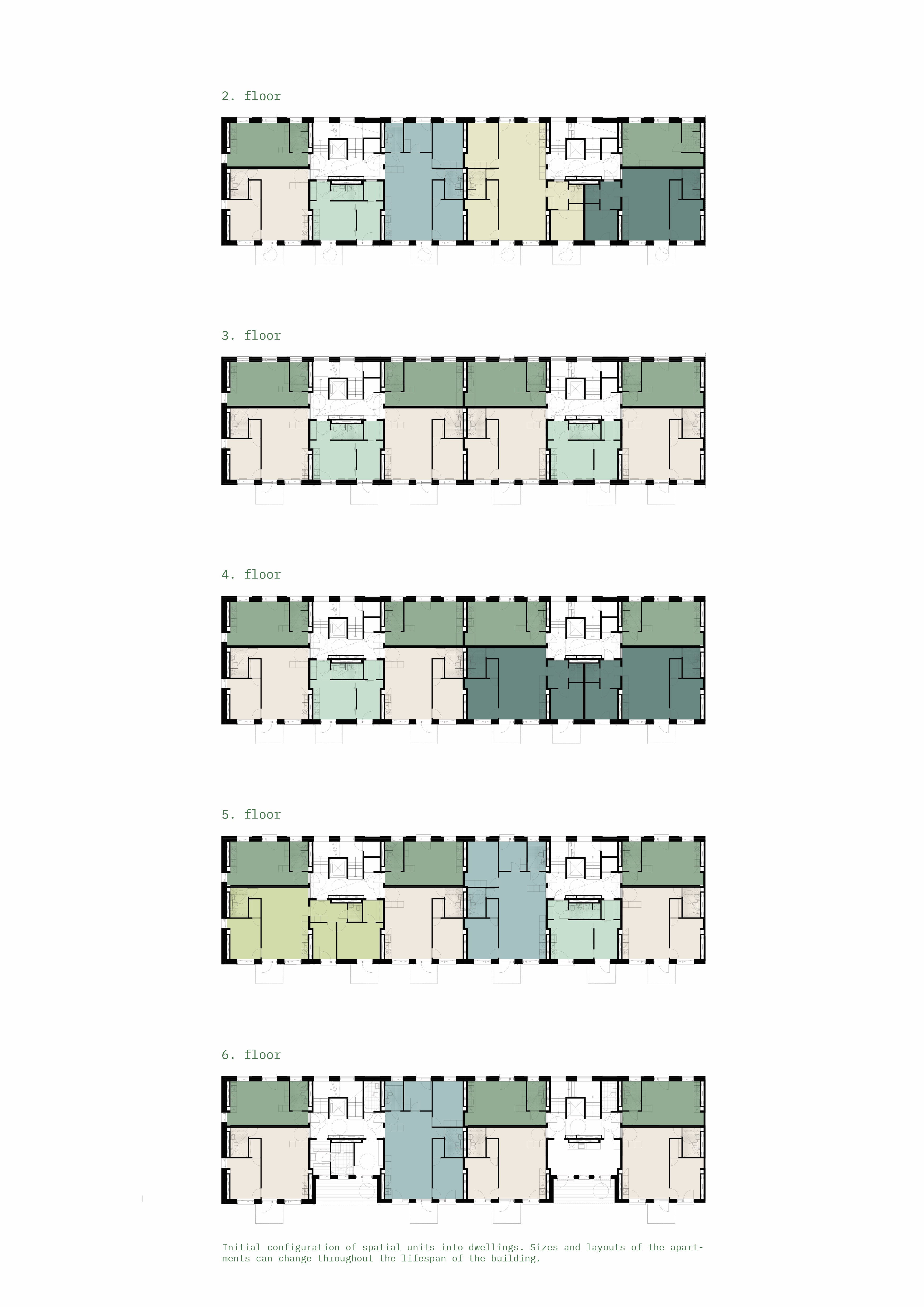 The owner developer has agreed to monitor all the conducted changes in the building for 10 years after the completion until 2034. The developer has also interest in developing together with our architectural practice an interface in which the inhabitants could state their potential wishes and “play” with the potential solutions considering their spatial needs and aspirations in real time. This would give more say for inhabitants over their spatial solutions also in rental sector.
