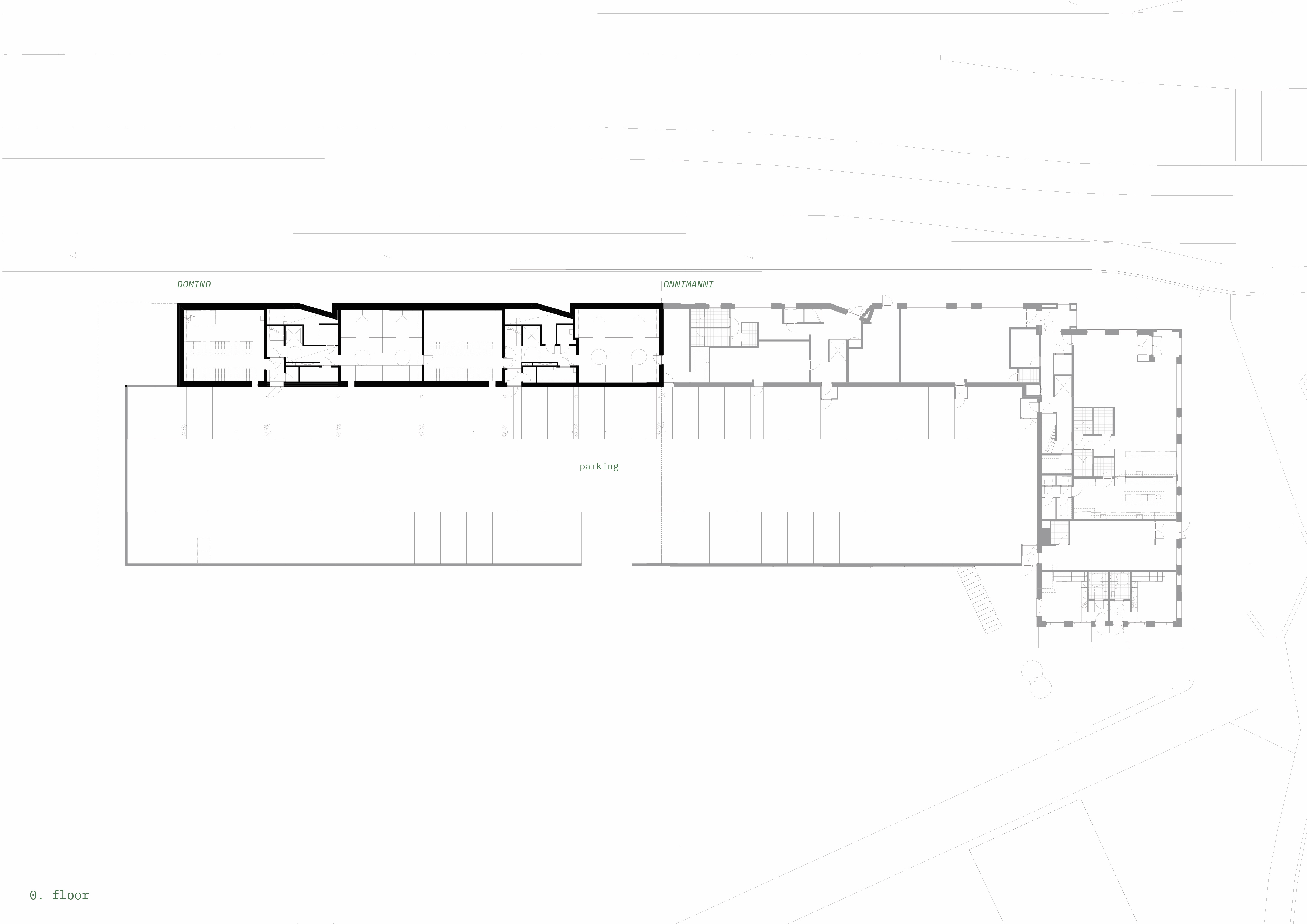 In Domino housing, based on a new kind of spatial unit-based thinking, the spatial units, can be easily combined and separated into different sizes of apartments and also workspaces. As a rule, all spaces in the building are in connection with load-bearing openable service shaft elements, which means that the spaces can specialize and be modified into any room space including kitchens and bathrooms. The locations for different room types are free as the mechanical services run mainly in vertical direction. The service shaft elements provide also spatial potential for later changes when building technology develops and mechanical services age.