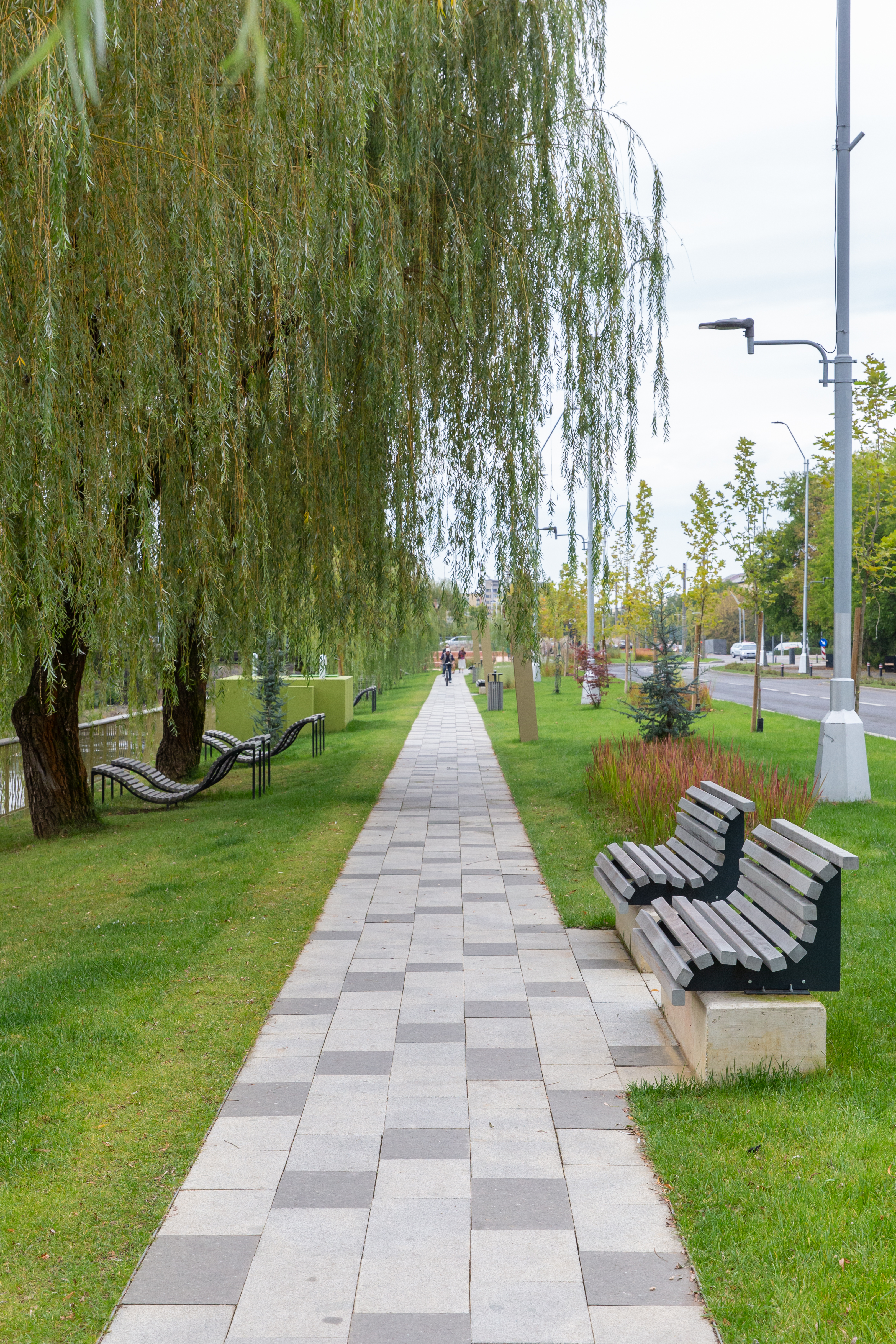In terms of numbers, 1.7km of the right side shore was reshaped, and now you can see that citizens use the spaces daily not only for transit but also to spend time watching the river and the fauna, enjoying a walk, sitting and talking or kids spending time at the playgrounds. From a total area of 37414 sqm, 33677 sqm of green spaces were designed and planted with young trees to replace the old ones gradually. A significant achievement is the impact of going through new initiatives to replicate the idea in other parts of the river. Making the river part of the city will encourage people to learn more about the importance of water and immaculate river waters that support biodiversity. The project considers Bildung an essential part of the process, offering people this new perspective across the ecosystem. We encourage people to self-educate and self-discovery through dialogue with the context, especially nature. Developing a green promenade with a water feature in the middle of the city can reduce the latest trend of city run outs during weekends to enjoy nature. This tendency causes heavy car traffic and disturbs wilder natural areas where people gather. In conclusion, the project aims to liberate natural places outside the city where people flee to find riverbanks and green natural promenades.
