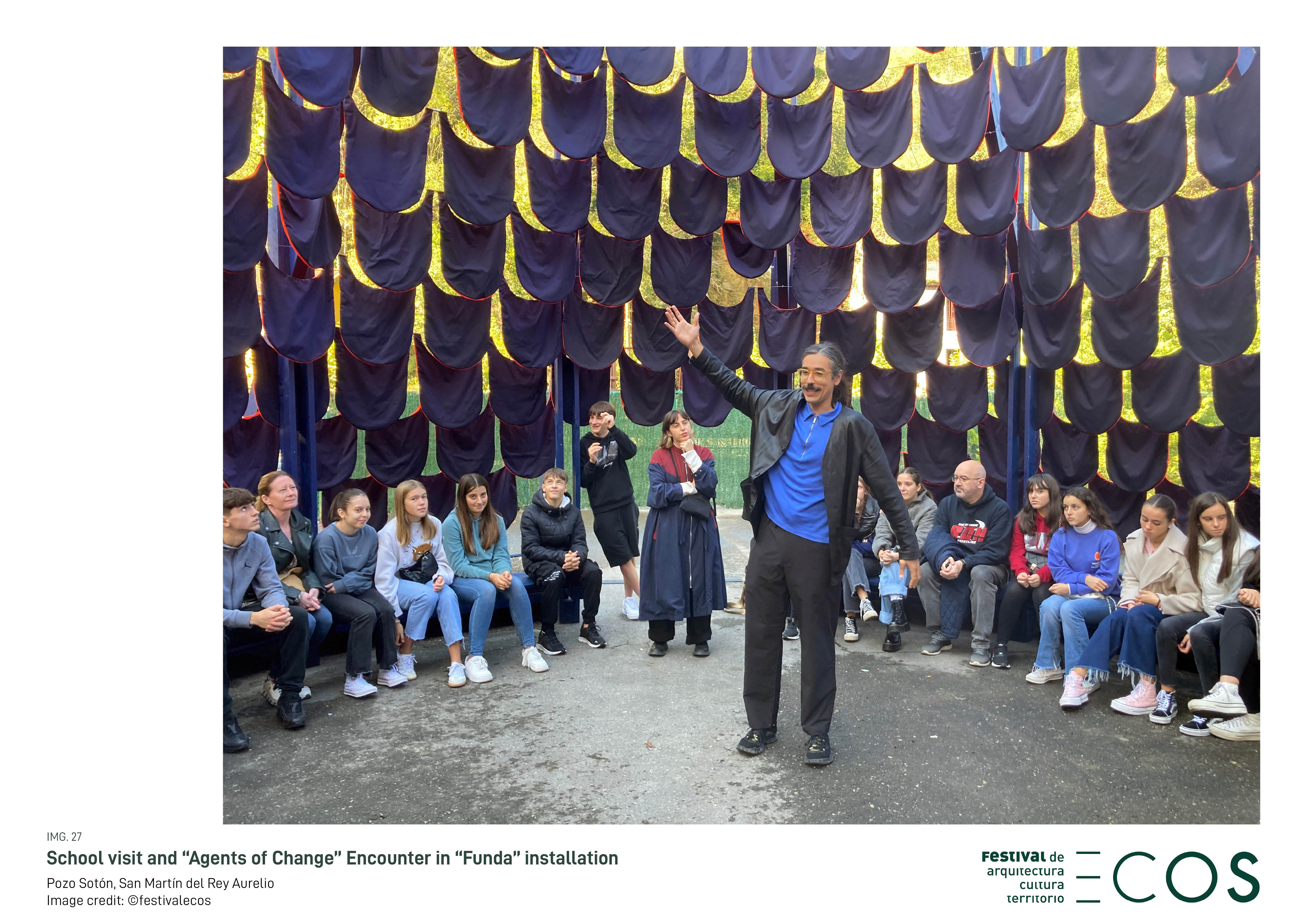 The festival’s conceptual strategy identified two primary target groups: local communities and youth. Several initiatives were designed to engage them, the most significant being the involvement of young participants from Arkuos, a local socio-educational space. They were given responsibility for the installations located in Pozo Fondón, which resulted in a project fully conceived and built by over 60 contributors aged eight to their early twenties.