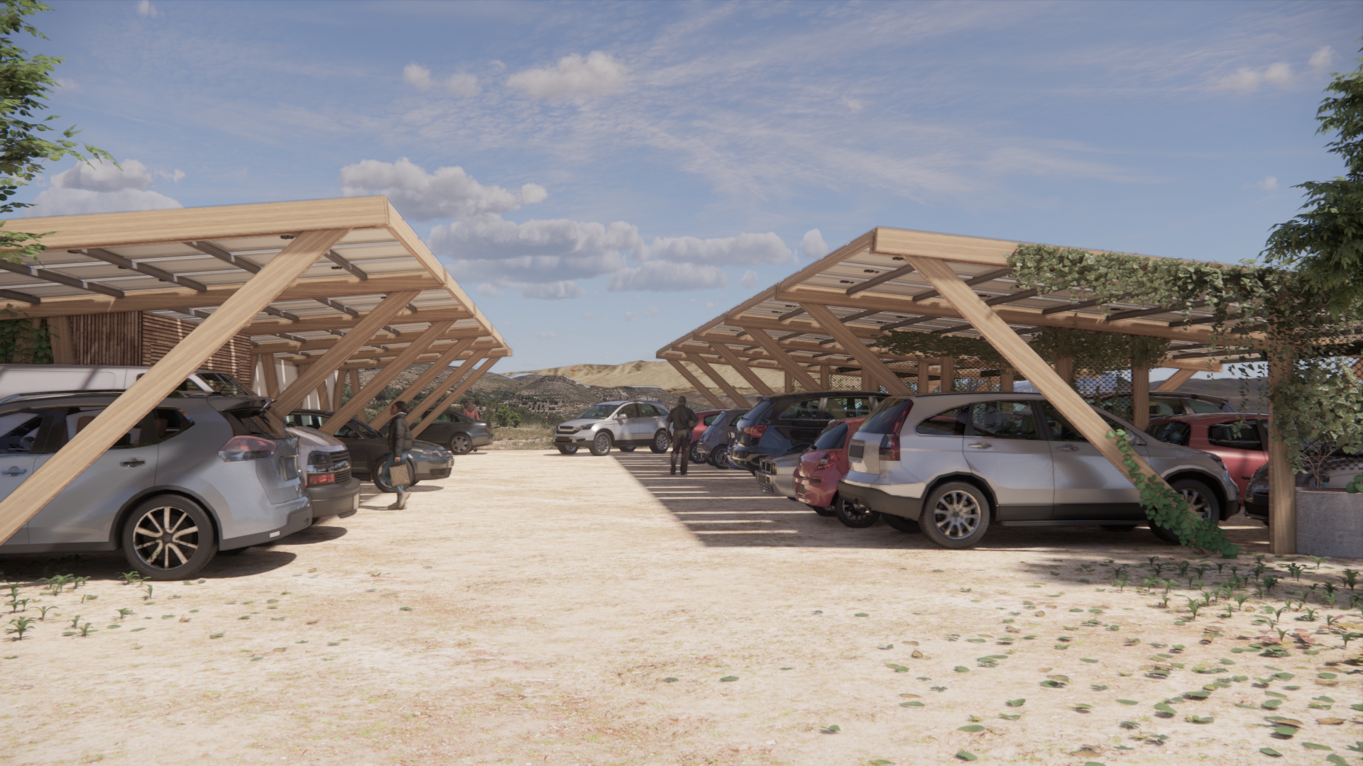 The design incorporates vegetation to improve the area’s aesthetics and lower the temperatures. Along with that, the solar panel structure will provide a shaded area, offering relief from the sun while generating clean energy, making the space both practical and enjoyable. We are located in southern Spain, in an area at the frontline of desertification, where intense solar radiation makes shaded spaces essential for comfort and usability.