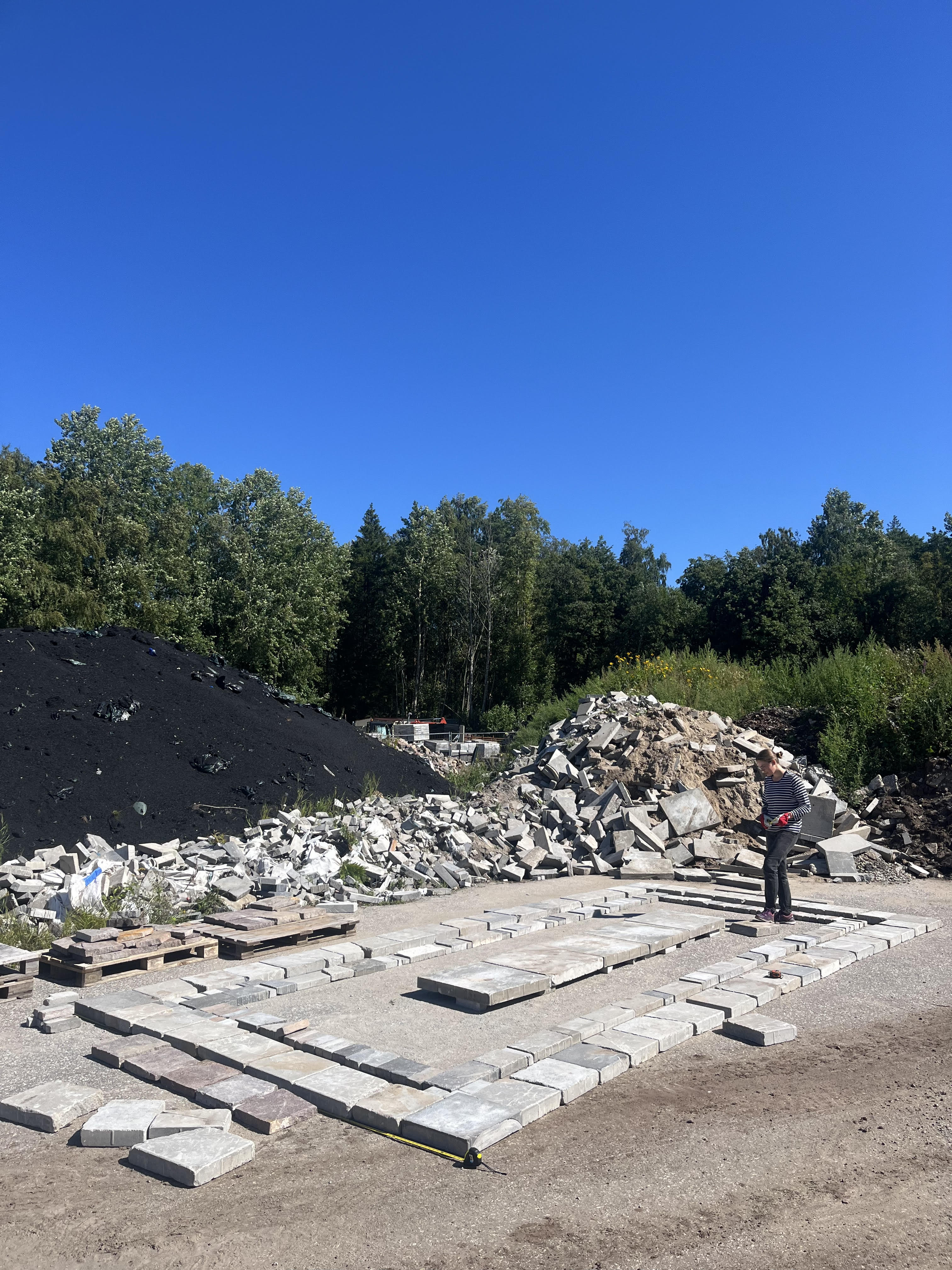 To save carbon, it is appropriate to work with materials that are locally available. However, this aspiration is encountered by the practical inevitability that the materials most sought for re-use do not often match those most abundantly discarded. In shaping popular Nordic aesthetics, local stones with nationalist undertones and an image of solidity easily find new life, but 20th-century man-made materials, which form the vast majority of global and Estonian construction waste, are often disregarded and undervalued. Bringing sensitive material re-use to public space design, the courtyard project sought to valorise 20th century construction waste in particular, challenging public expectations of waste.