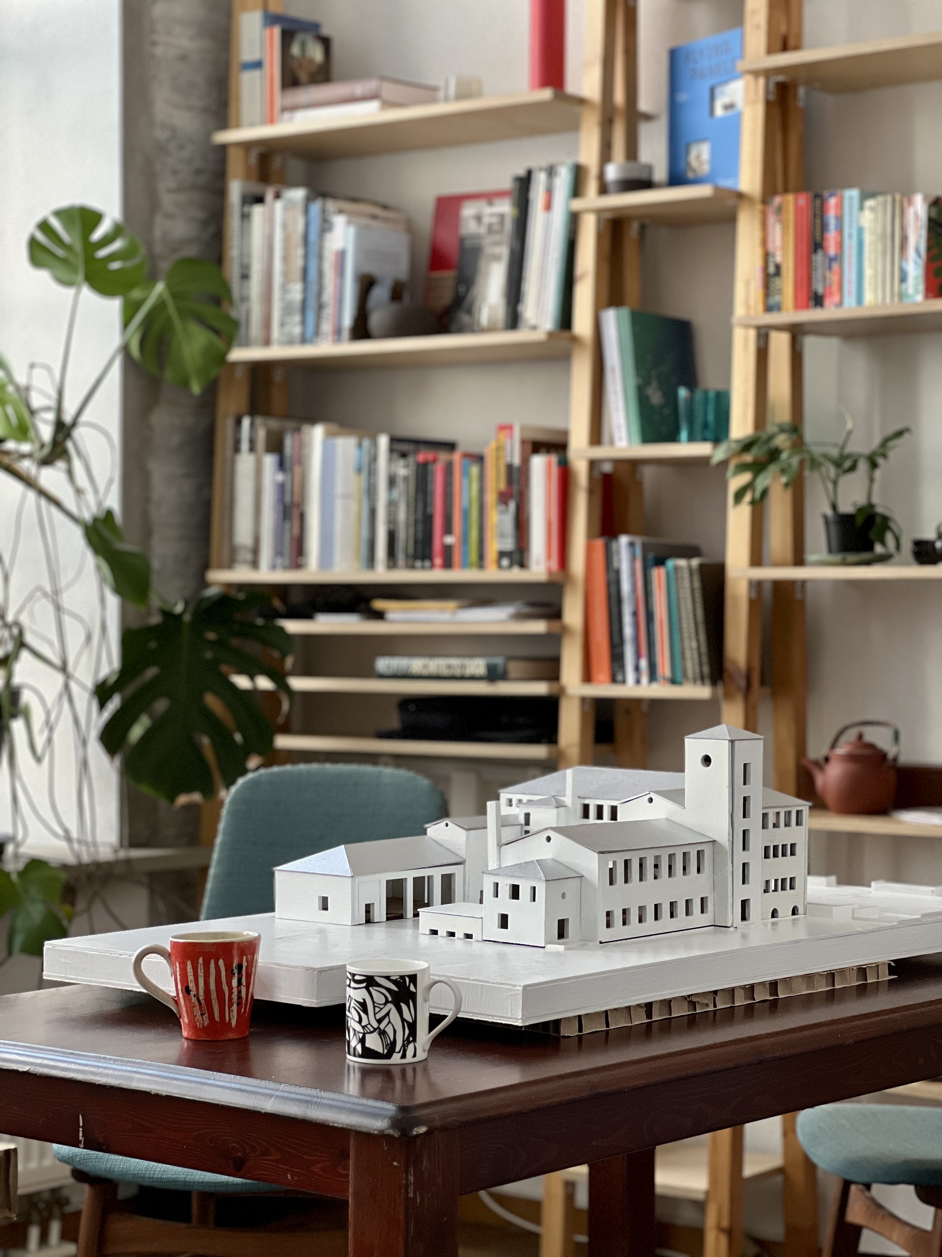 2. Generating future functions: Labels denoting desired activities and spatial interventions are placed on a 1:200 architectural model of the site. These suggestions informed the spatial logic of the amended design, ensuring the current phase of development aligns with future functions of the centre and its grounds. E.g. “Firepit for the garden”; “Outdoor cinema and concerts in the courtyard.”