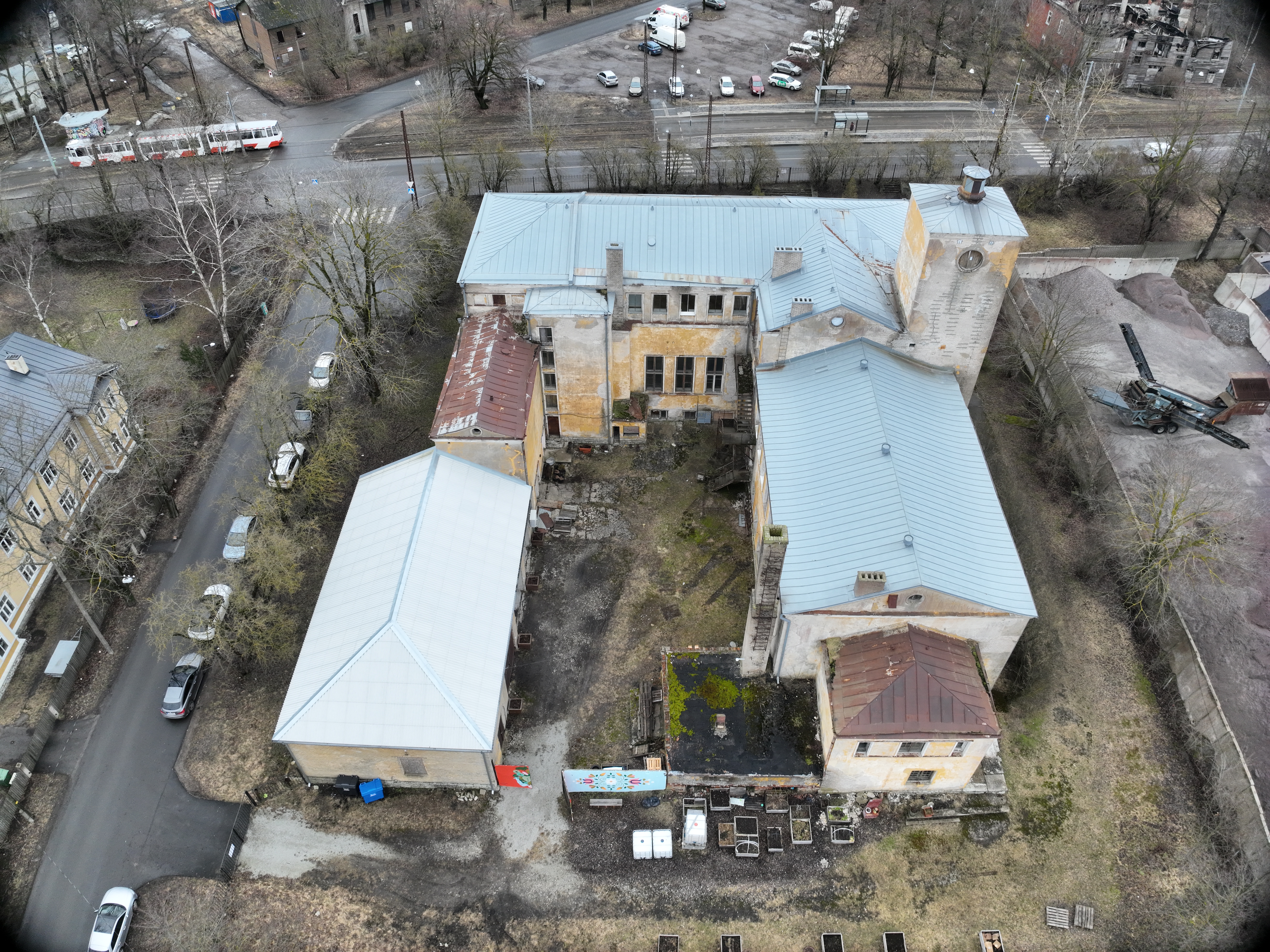 The scheme delivered a light-touch redesign of the Kopli Community Centre’s courtyard. The Centre had remained largely abandoned since the 1990s, with the exception of a community garden and a Soviet-era outbuilding, partially converted into a free public Makerspace in 2022. Currently undergoing rapid gentrification, the area lacks versatility in its free accessible public amenities. Mono-functional playgrounds and unkempt parks fail to serve the social needs of the vulnerable target groups – young families and non-Estonian- speaking residents. The previously overgrown, inaccessible grounds of the courtyard limited their use for larger events and daily leisure. Multiple hazard points (scattered debris, staircases at risk of collapse, etc) had also begun to hamper families’ involvement in events, as children could not be left to play without supervision in the contained courtyard, otherwise a prime space for independent play.
