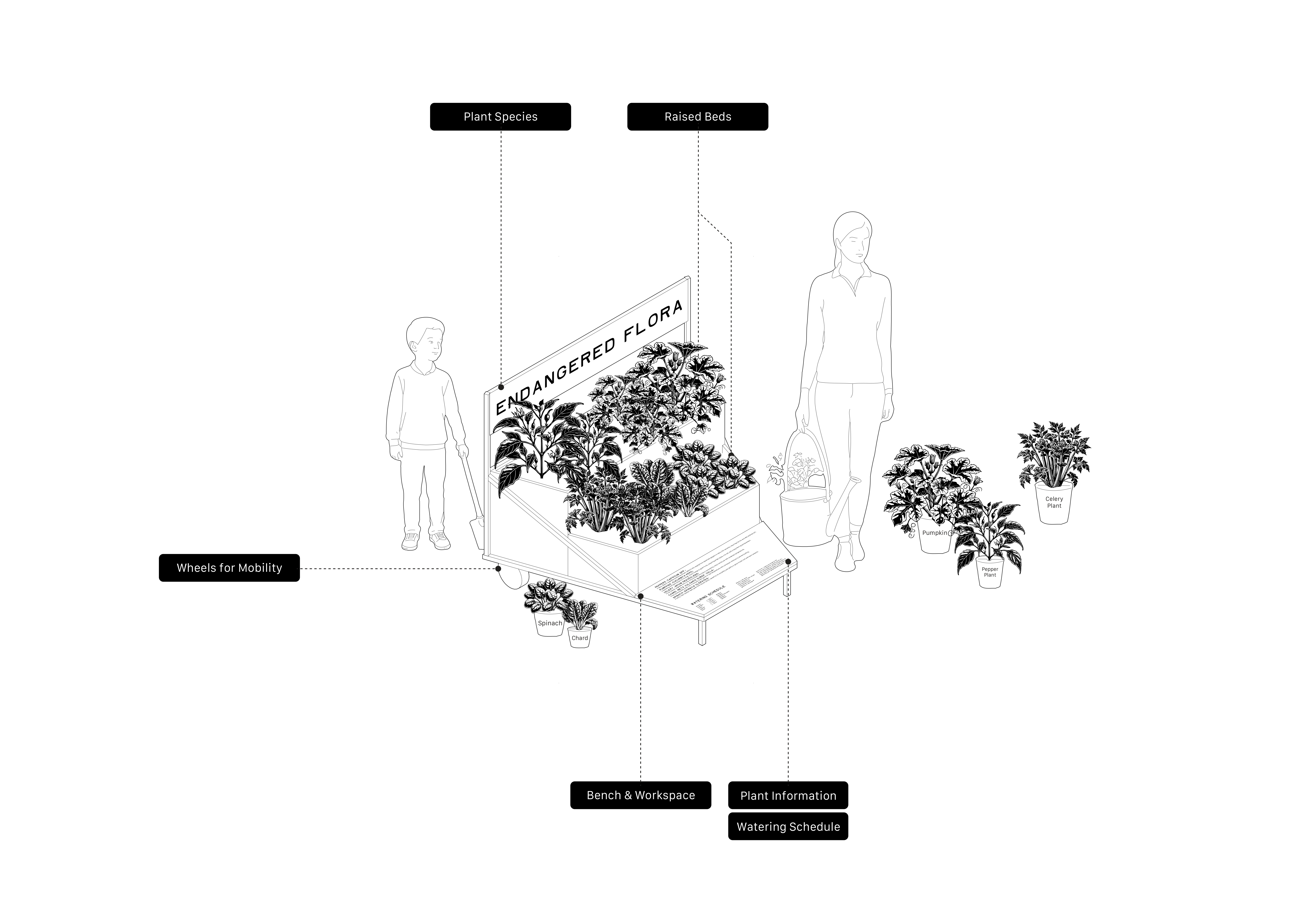 To promote circular economy principles, the initiative includes raised bed planters built from recycled wood and prioritizes soil permeability to prevent runoff and enhance groundwater recharge.