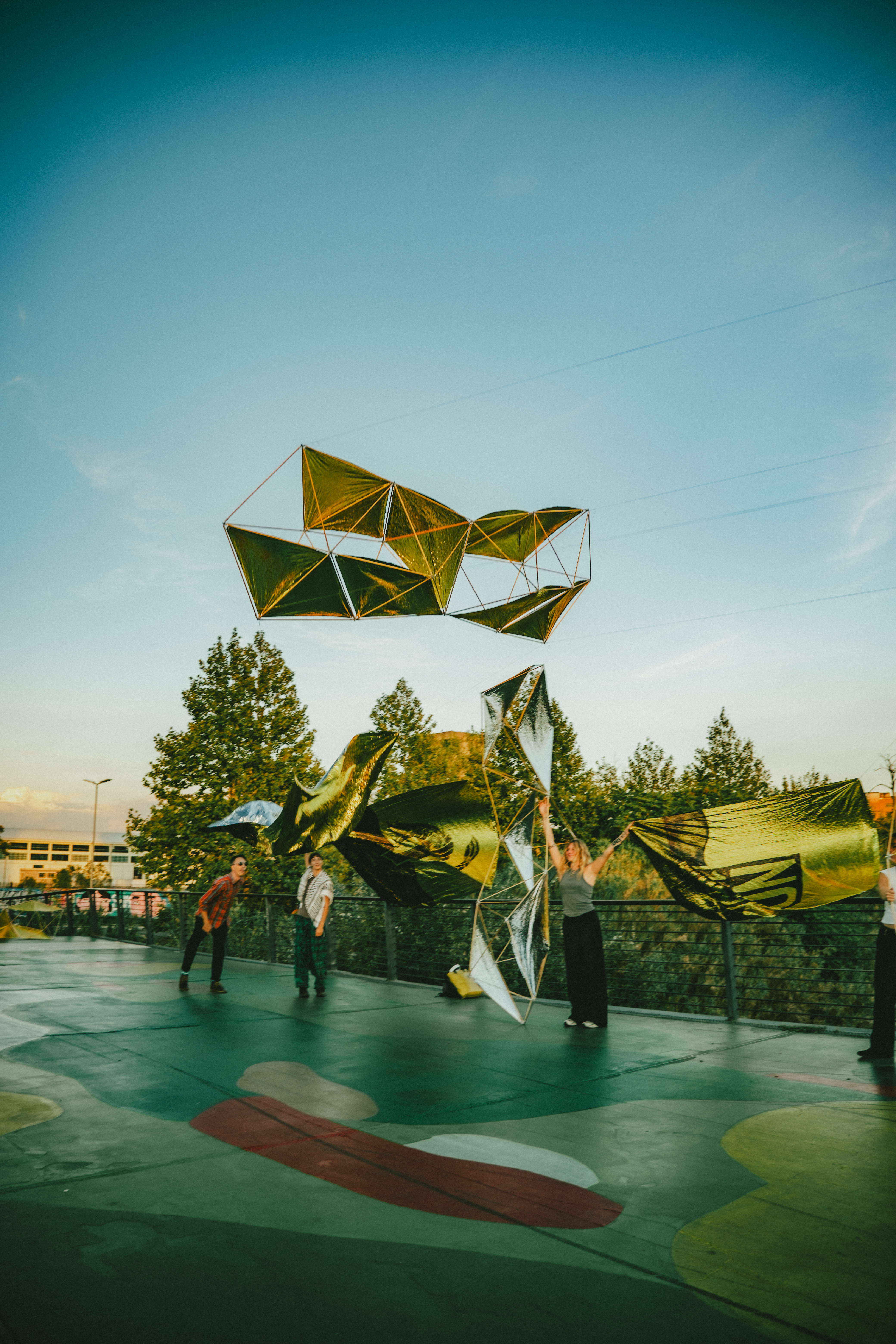 Among the actions implemented in pursuit of these goals are the public artworks created with the artists Alleg, Eloise Gillow and Giulio Vesprini, based on instances identified in participatory co-design workshops. Themes include the model of nature as collective intelligence, cooperation among individuals, and native species as a model for constructing a plural identity. Built on the walkable surface of a pedestrian bridge over the Tevere River, Vesprini's Upside Down portrays the river environment below by giving it back to a community that has almost forgotten it.