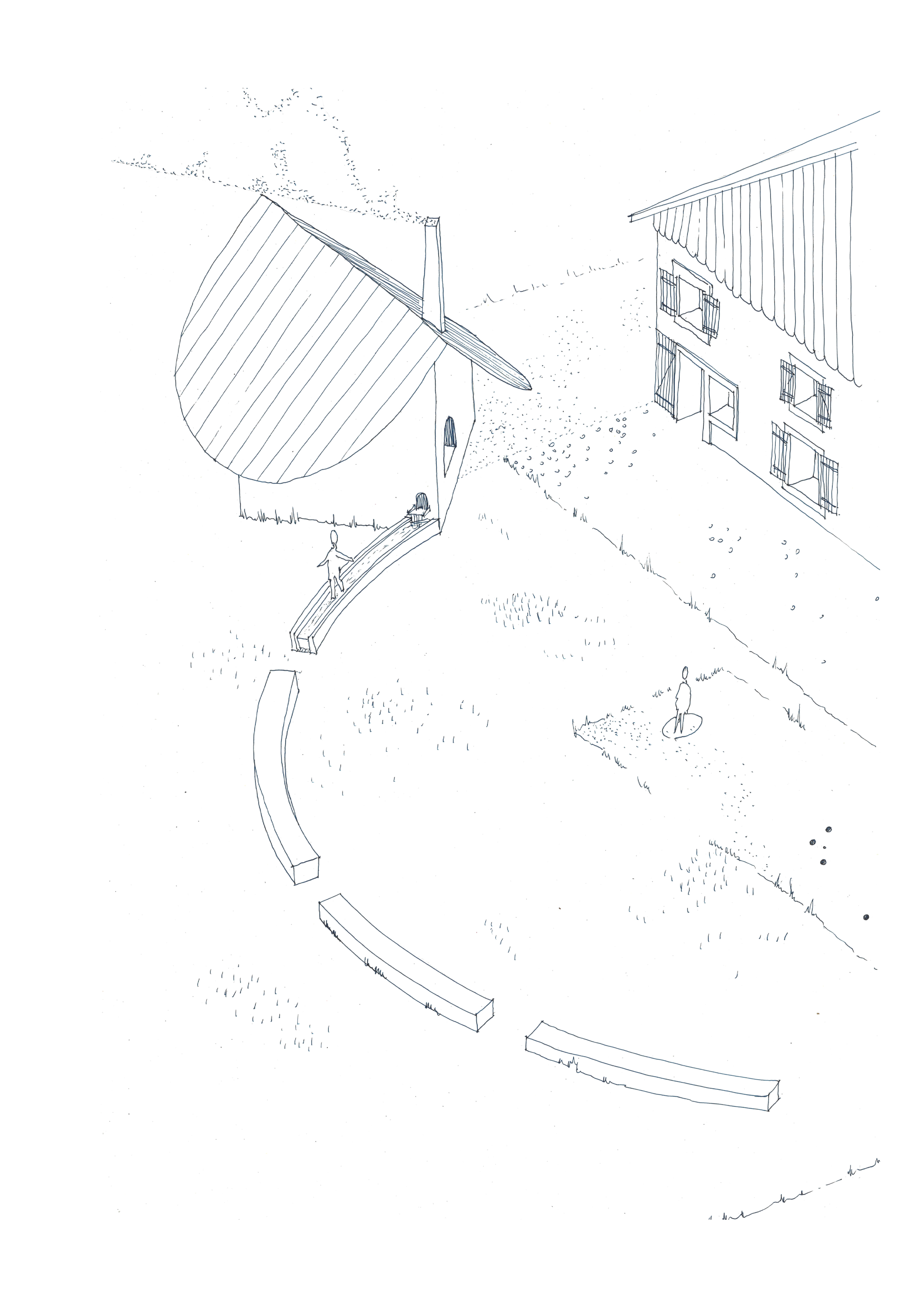 The project involves transformation and revitalization of a former tourist area and converting it into a venue for meetings and social interaction in a small mountain village. The project focuses on developing of 3 areas: a restaurant, a hall with open access and an outdoor bowling area, which together will form the village center.