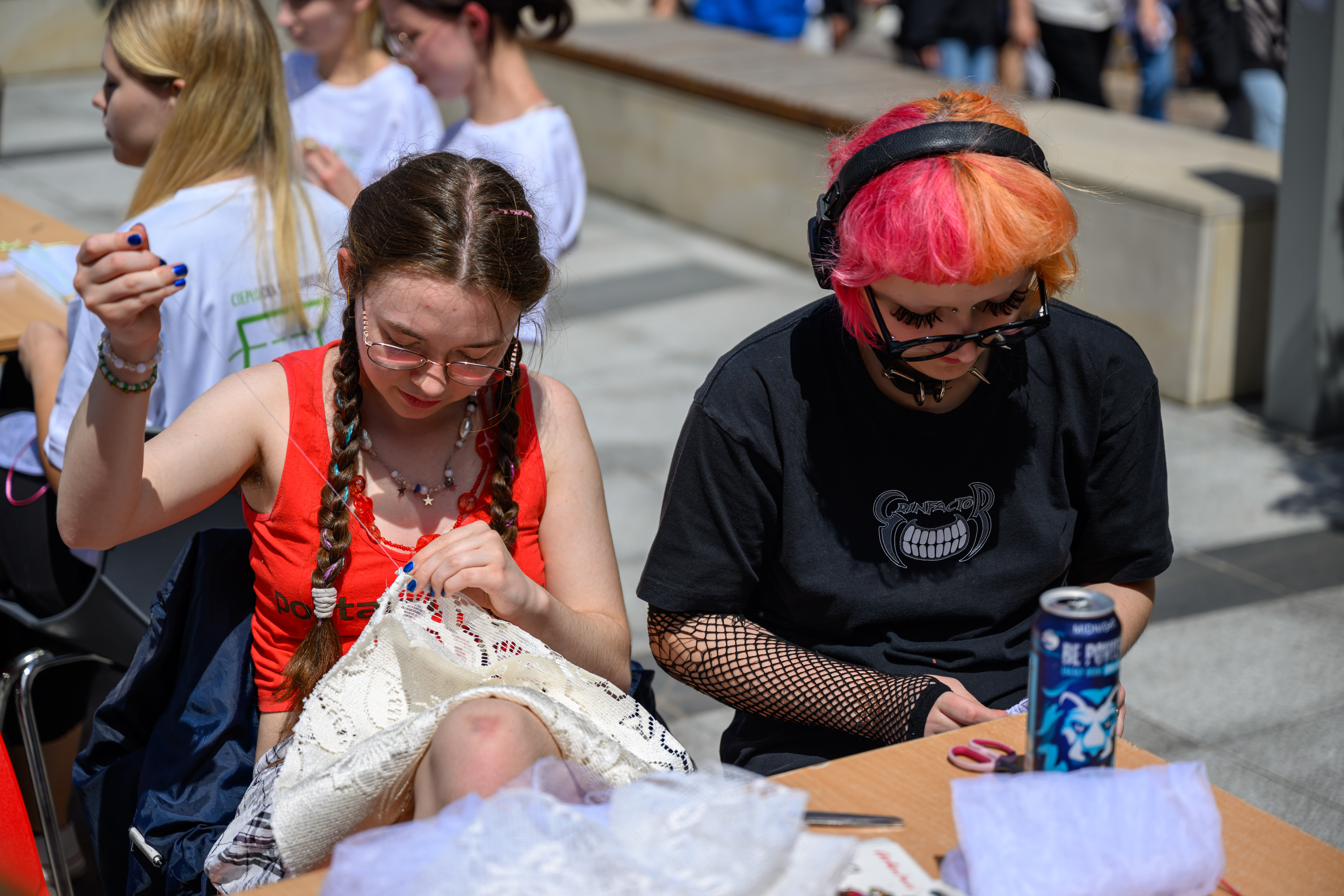 Bags of Art integrated several generations of Tarnów residents and residents of the region from various social and professional groups. Everyone could take part in the project, and the bags were sewn during the happenings together by seniors, young people, scientists, journalists, people with disabilities, engineers, people from groups at high risk of social exclusion, politicians, artists, men and women, everyone regardless of age, gender, origin and social status. Everyone could join this sewing family from Tarnów on equal terms and feel needed. Some of the young people and seniors sewed the bags by hand. Sharing practical sewing tips encouraged conversations and the development of social interactions. Many young people learned hand and machine sewing for the first time during the campaign. The experiences they gained during Bags of Art strengthened their sense of agency and the desire to share their newly acquired skills with their peers and colleagues.