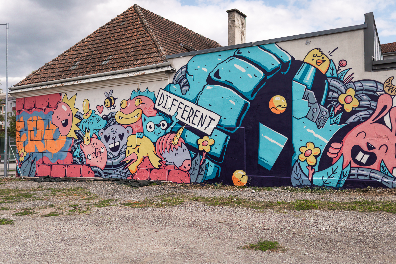 This project is an example for converting a former brownfield into a lively quarter because it shows a promising strategy: the initial step was to create a space for humor, art, programs children and community - this automatically leads to the transformation of a potential “lost place” into a lively place where people can enjoy themselves and experience community. In addition, aesthetics must be designed together in a participatory way to allow a feeling of belonging, to make sure the building reflects the identity of a locality and a European region.
