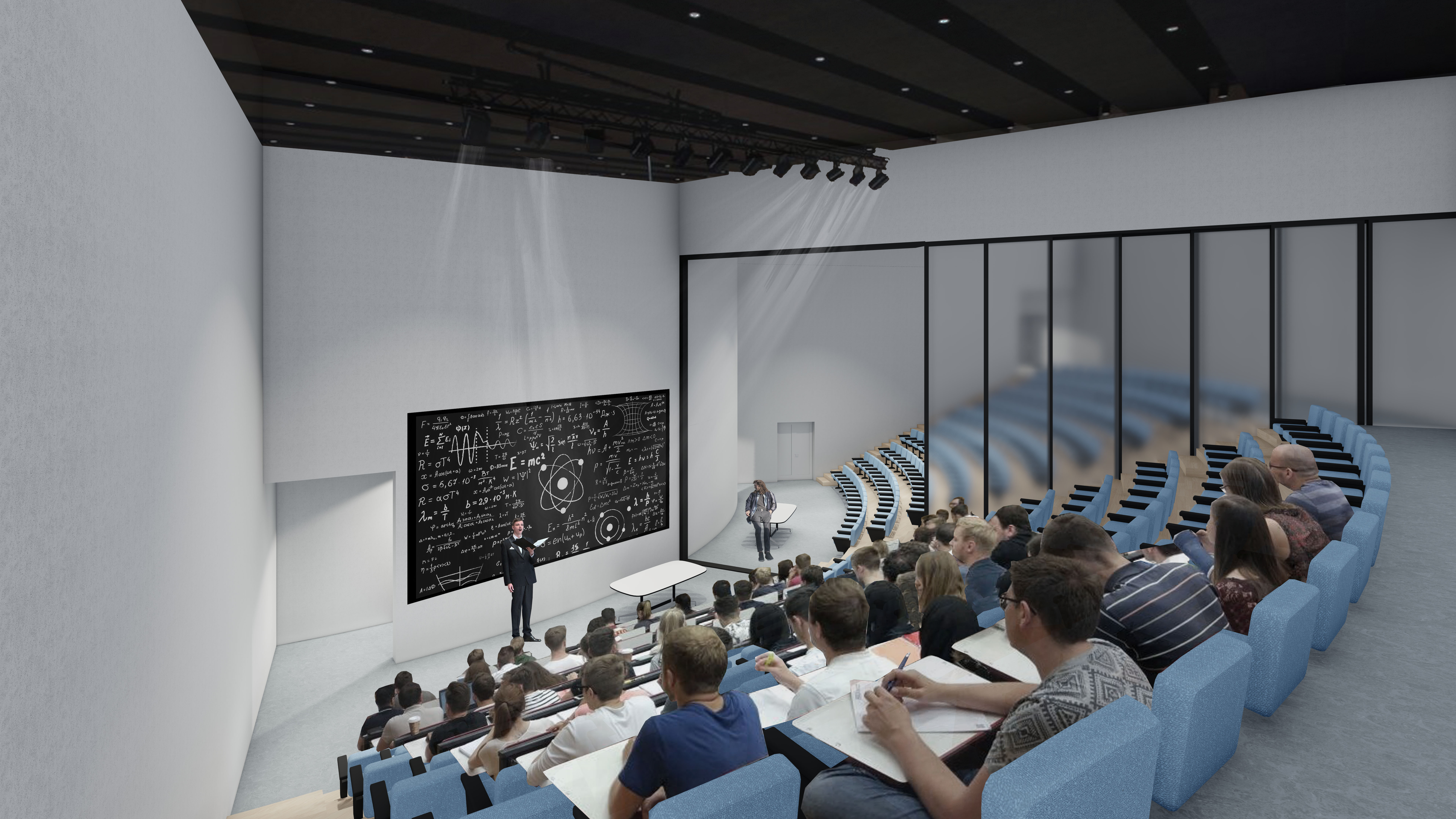 The project proposal envisions dividing the designed building into four functionally distinct volumes, which are interconnected: