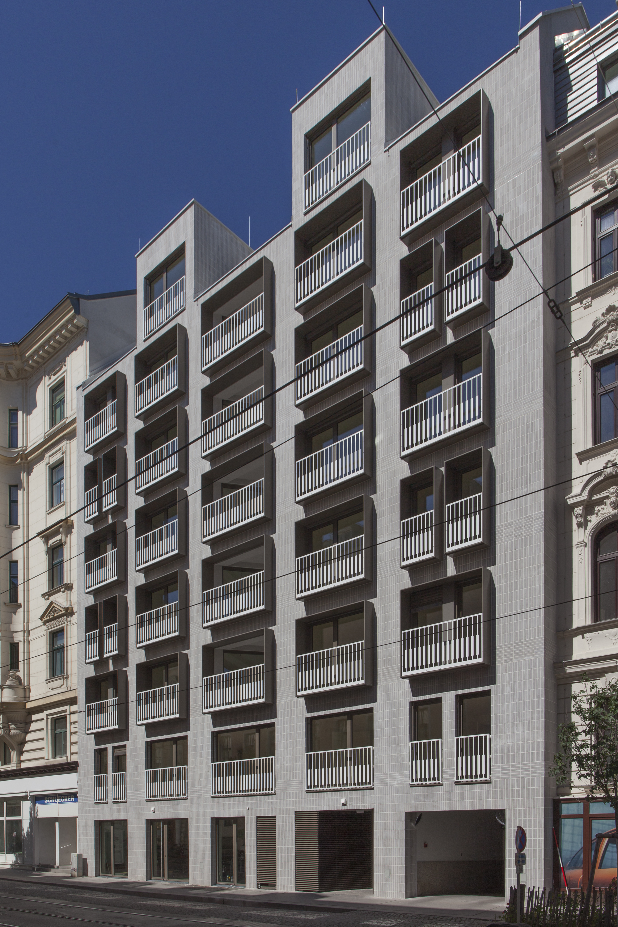The visual factor may also play a major role for some, as the new image of Porzellangasse benefited greatly from the revitalization. The newly realized building blends in with the appearance of the adjacent buildings due to its classically structured facade. The new look of the building is emphasized by the adjacent typical Viennese old buildings and together they form a harmonious streetscape.