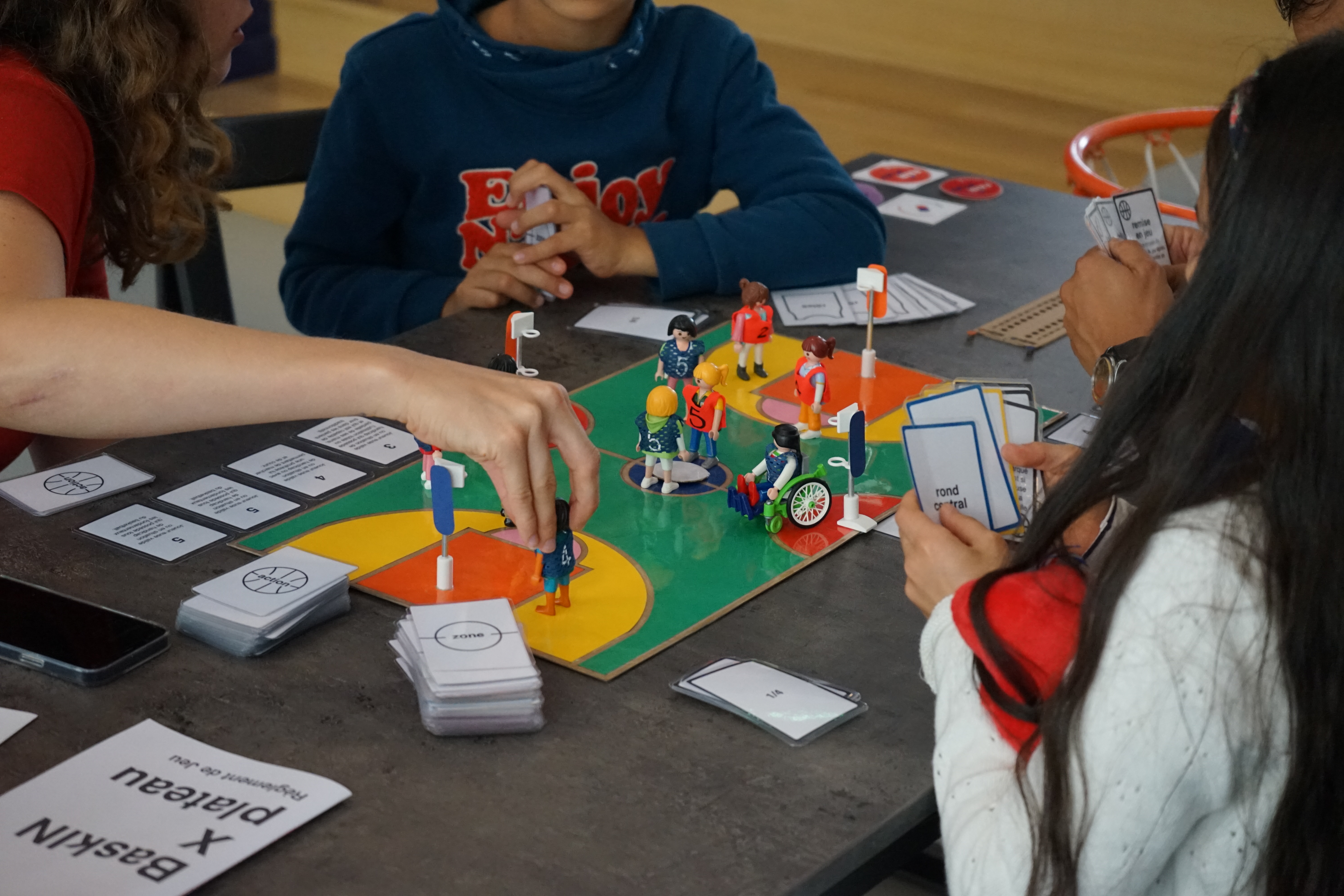 The sports mediation kit is the result of a co-creation between a sports club for disabled people (Novosports), baskIn and a design collective (Collectif Fair Play). Together, we have created a device that meets the needs of coaches and mediators to help them learn and understand the rules of the sport in a fun way.