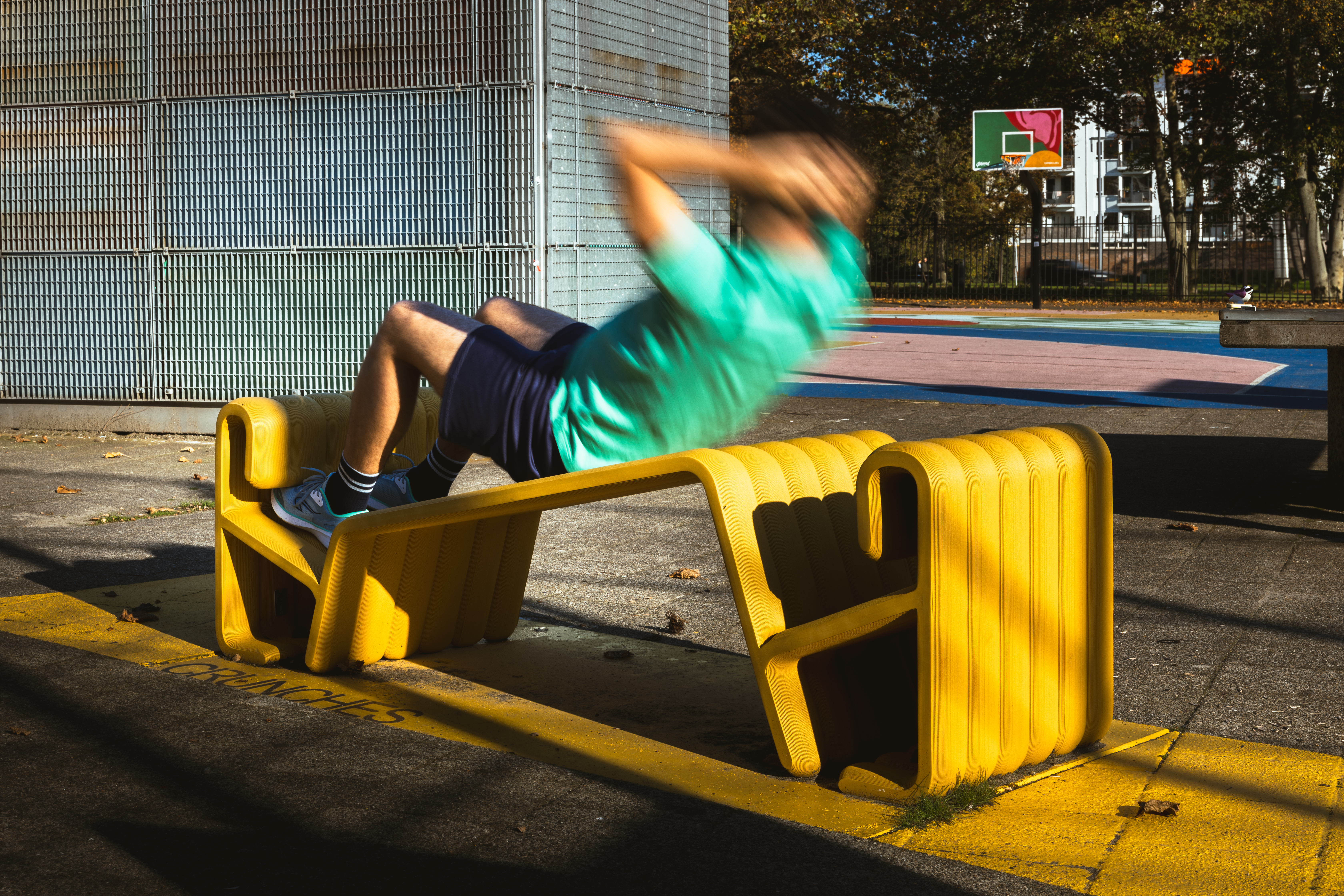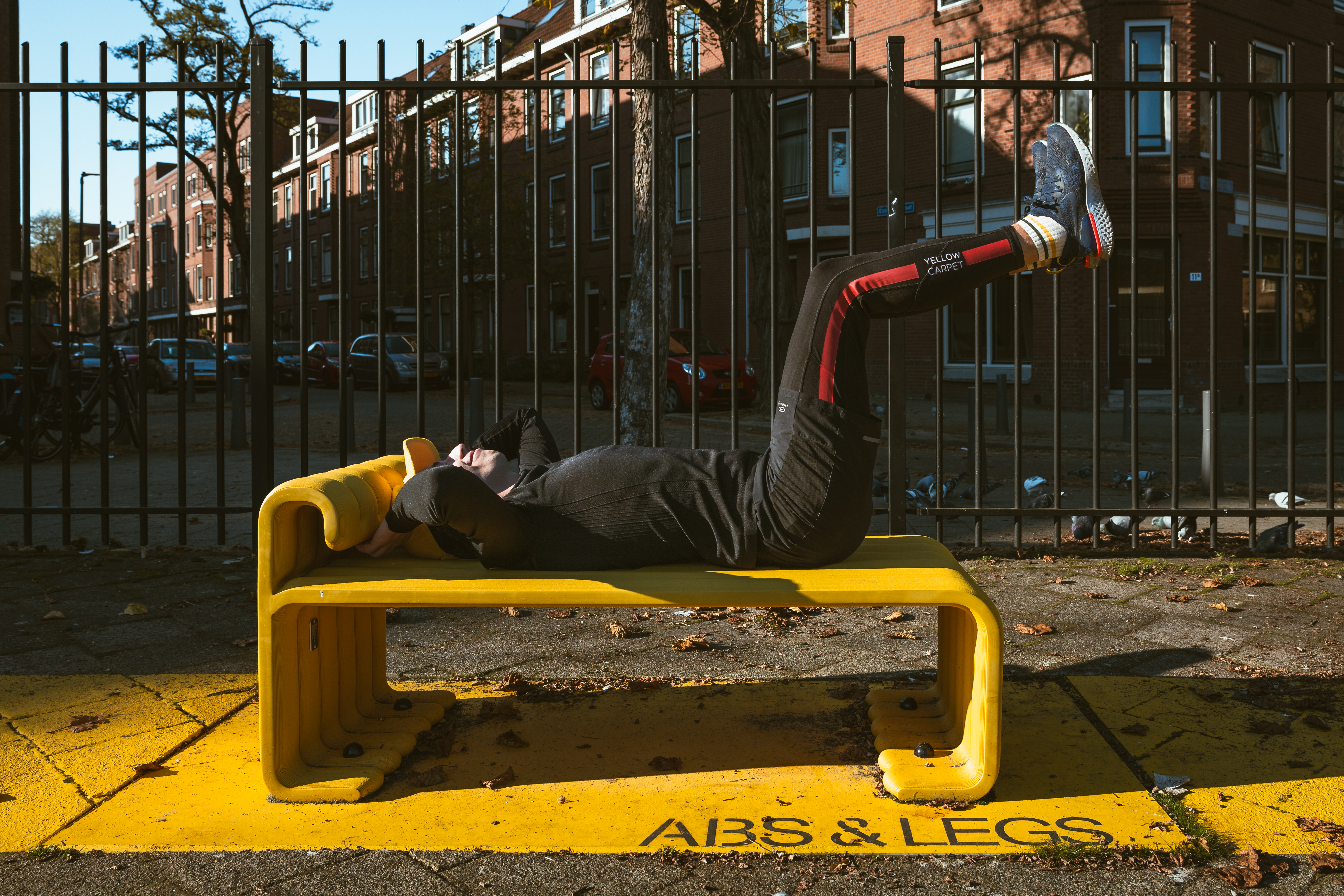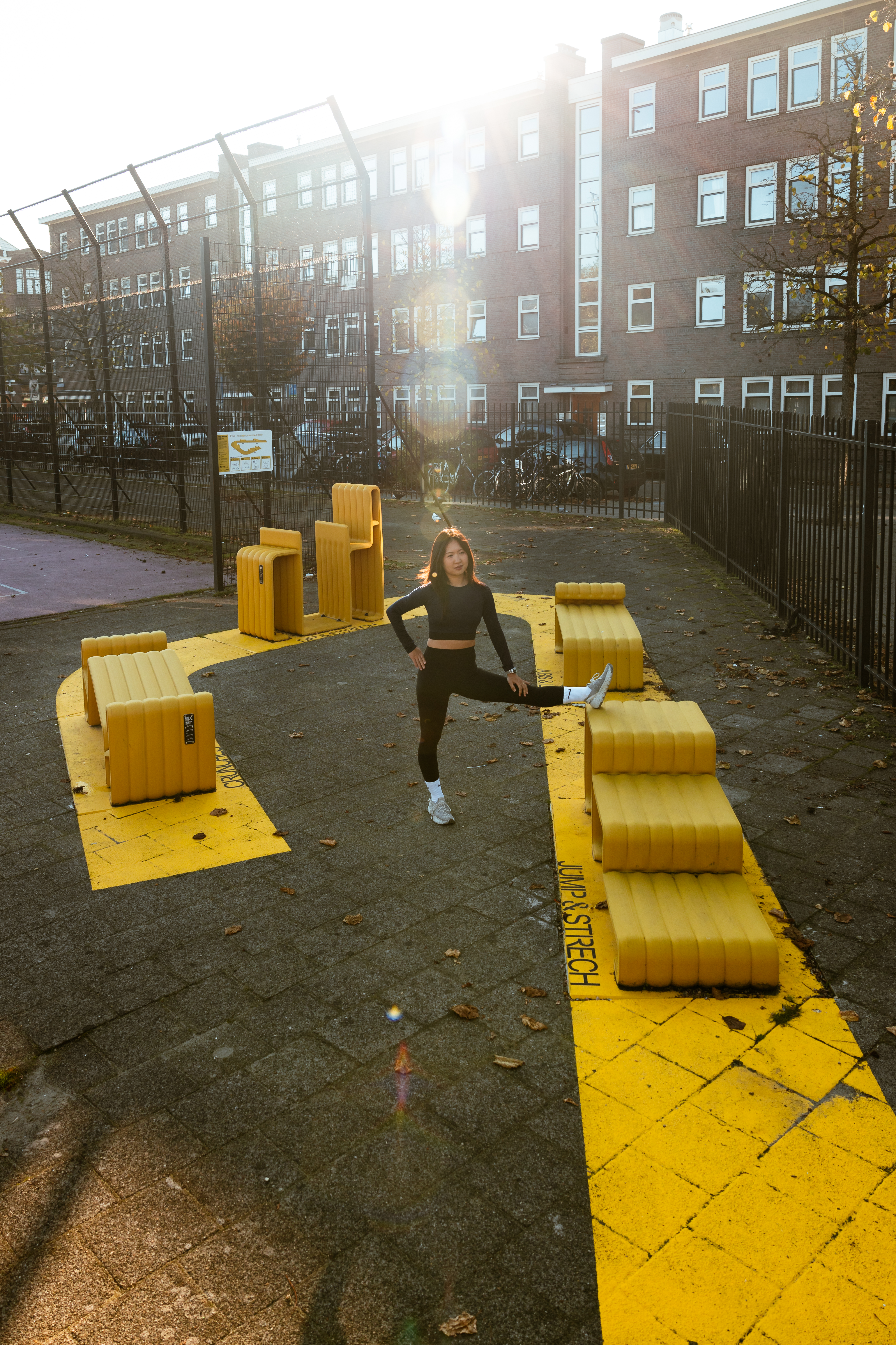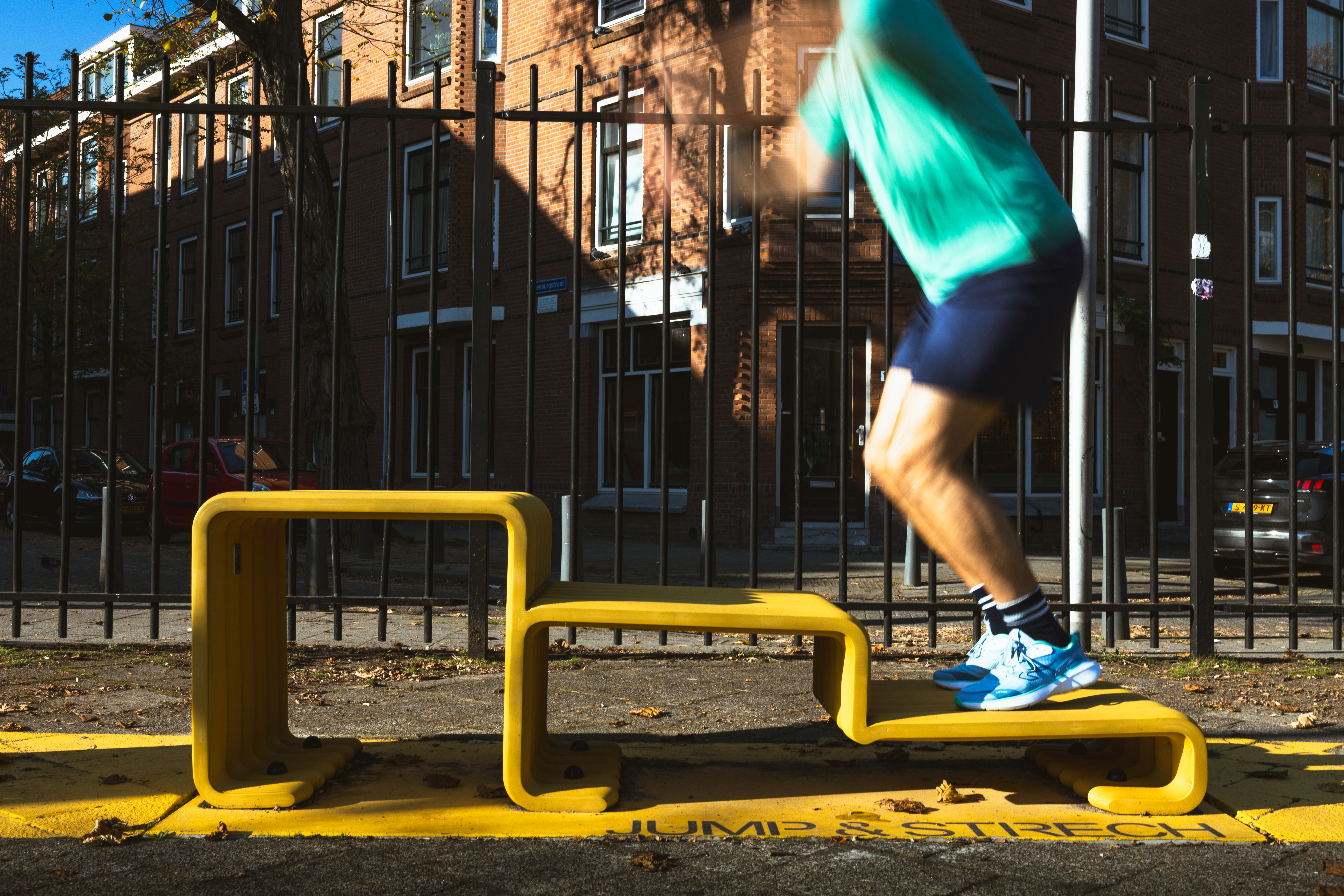 Yellow Carpet tackles this by developing a 5 km running ring that connects existing outdoor sport facilities and adds a new 3D-printed outdoor gym location along the route. The objectives of the project are (1) to create a network of exercise facilities accessible to everyone (in time, space and cost), (2) to promote a healthy lifestyle and motivate inactive citizens to sport, (3) to activate and regenerate underused public space in the cities, (4) to stimulate the circular economy by using waste materials and (5) to explore the possibilities of innovative technology in the creation of an attractive product for outdoor fitness.