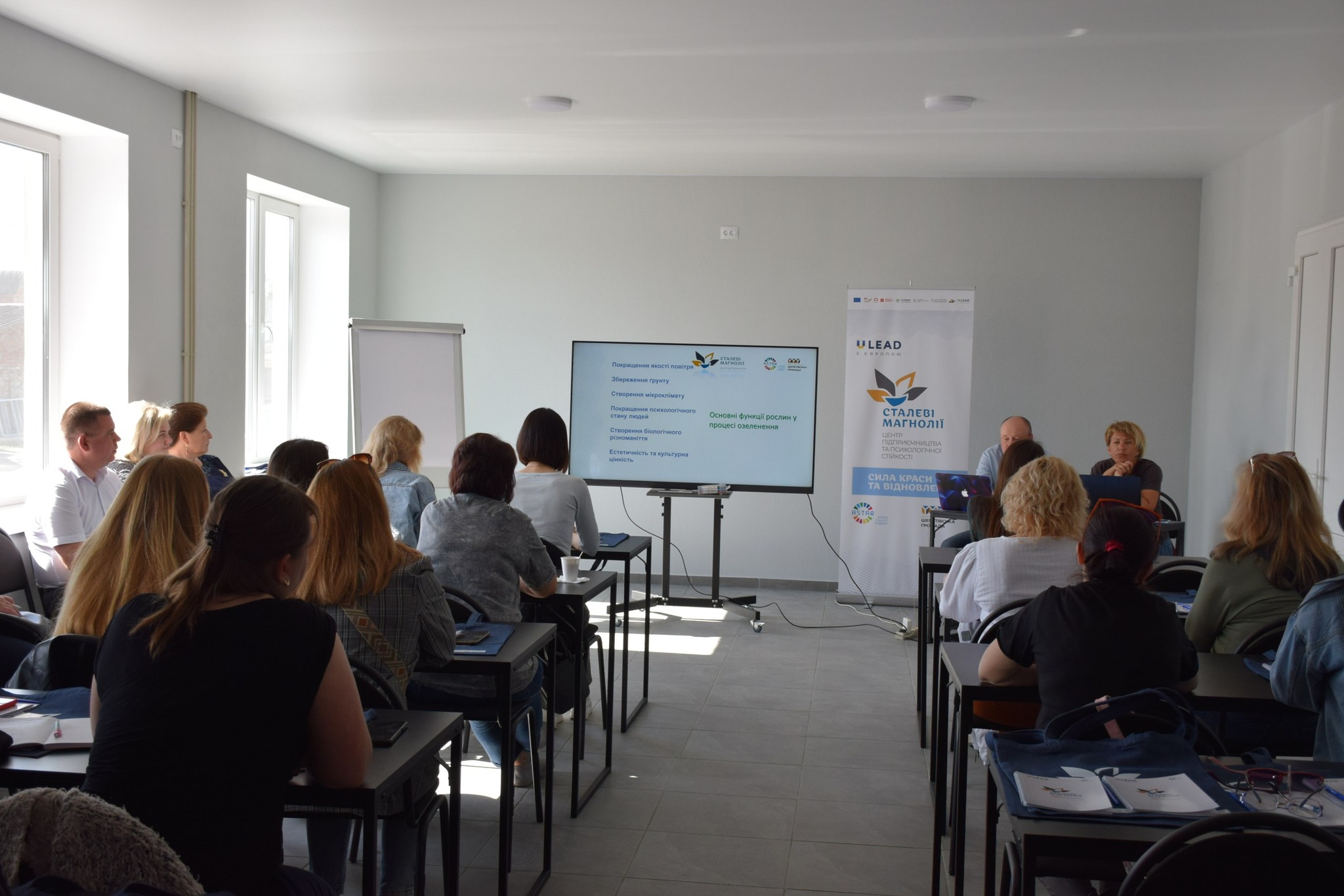 The Steel Magnolias Center for Entrepreneurship and Psychological Resilience project is a modern center where flowers and green spaces are grown. The center was created on the basis of the Shepetivka repair and maintenance enterprise and is a greenhouse complex and training center, in particular for internally displaced persons, for psychological rehabilitation through floriculture and greenhouse training.