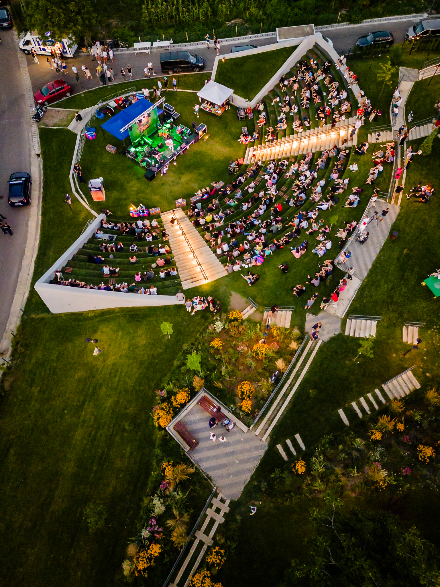 2. Eco-Design: The 250-seat summer theatre, built with eco-design principles, uses grass-covered seating, reducing the need for artificial materials and promoting natural cooling. This sustainable design aligns with the project’s environmental goals while creating a community space for events.