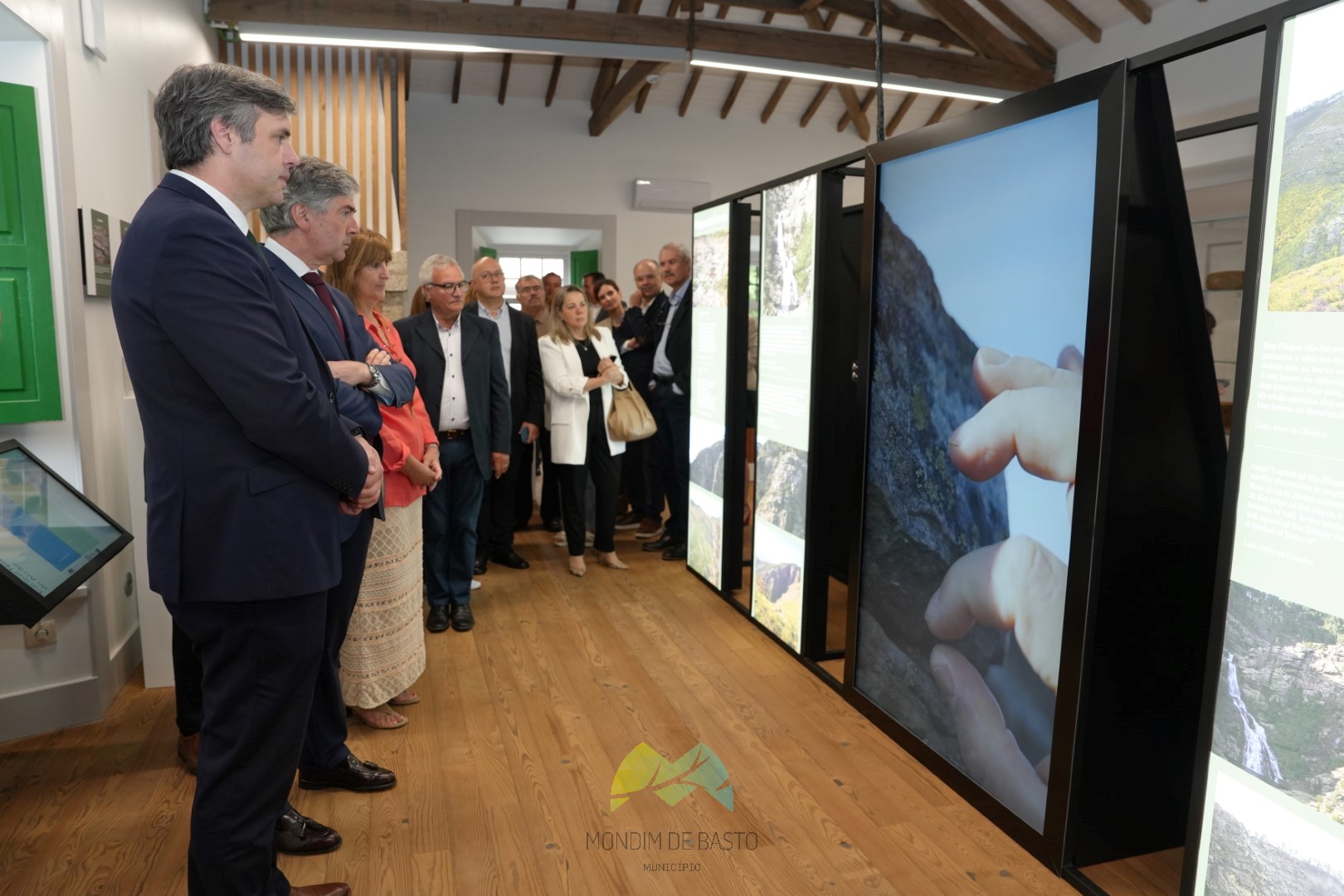 Of particular note is the design of an area dedicated to the Fisgas de Ermelo, which demarcates a space in the Interpretive Centre, contemplative with scenographic compositions, light art and translucent photographic panels that artistically show the transformation of the Fisgas throughout the seasons. The strong sound immerses people in the calm, almost hypnotic atmosphere of the constantly moving water of the Fisgas de Ermelo. Every 60 seconds you feel (visually, but also sonically) a greater flow of water; at this point, motions graphics show infographics related to the origin, evolution over time, sustainability and optimisation of water use. It's a space to stop, admire and reflect on the data that is shown. The ultimate goal is to convey all the power that the slingshots of Ermelo and the water resource have.