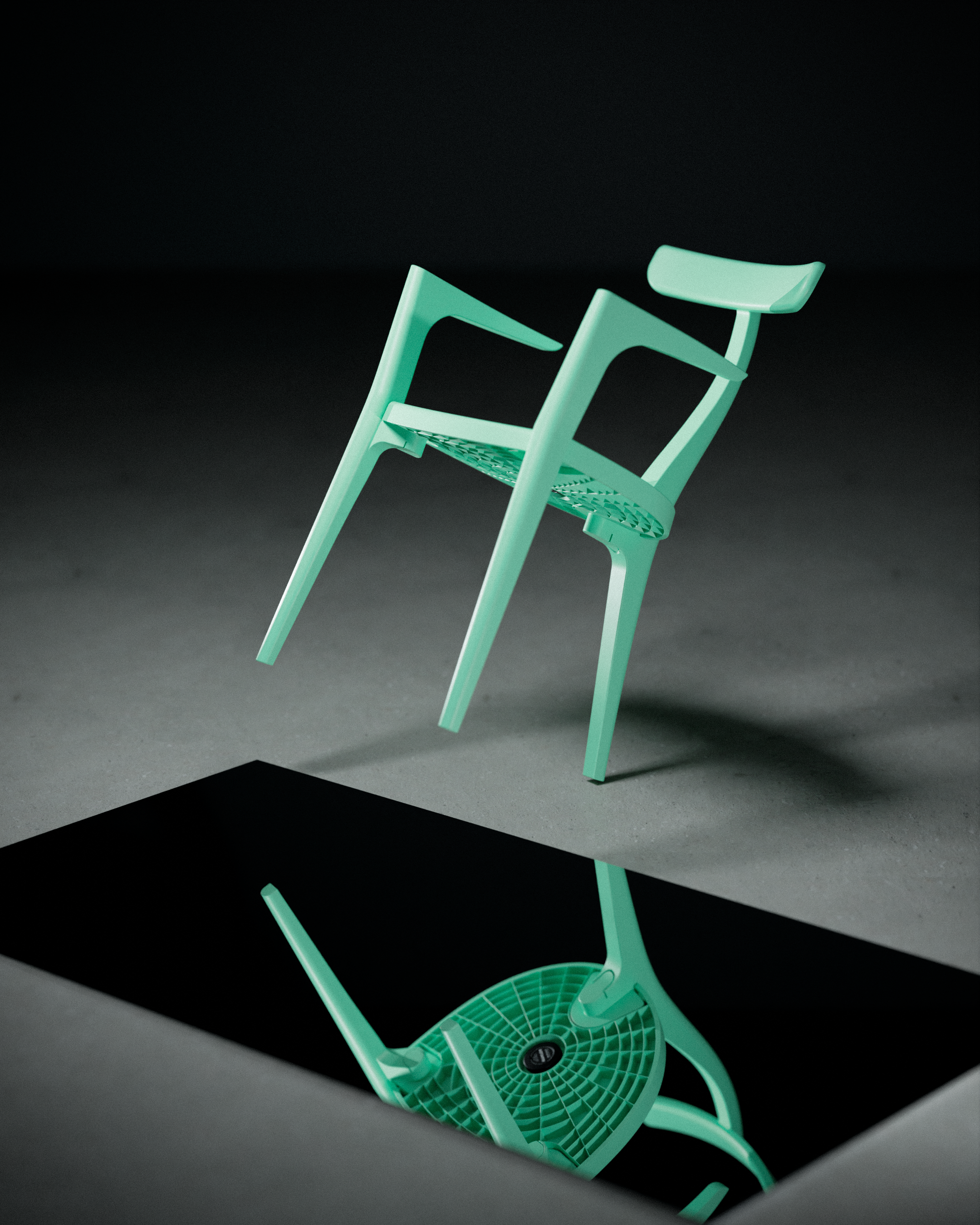 In terms of sustainability, our primary goal is to minimize environmental impact by using 100% recycled plastic in the production of the Beluga chair. This material choice significantly reduces the need for virgin plastic, cuts down on plastic waste, and supports the circular economy by ensuring that the product is fully recyclable at the end of its life. Our design is built around circularity, ensuring that the chair can be disassembled and remade, contributing to the reuse of materials rather than their disposal.