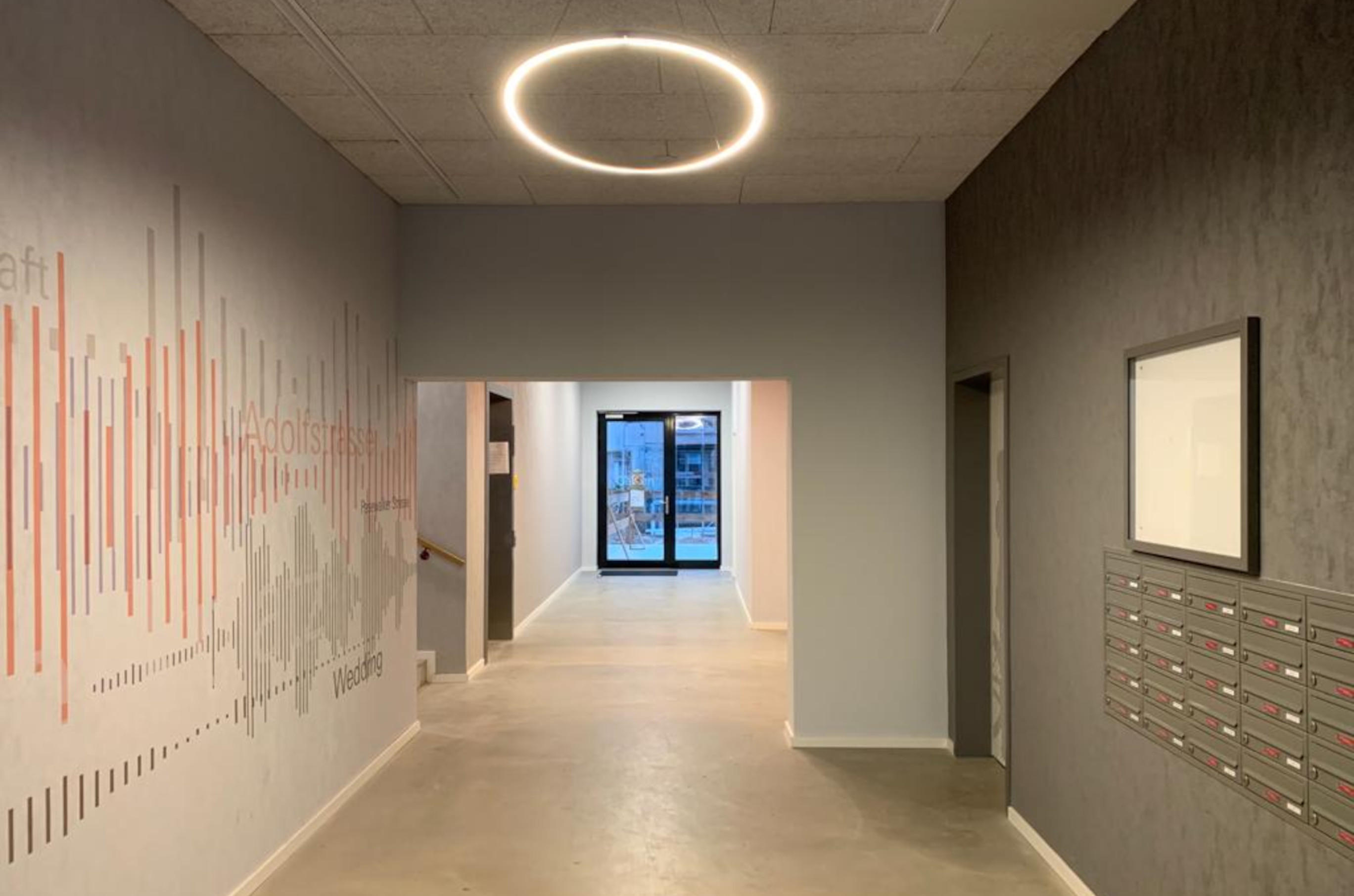 A range of structural measures are the result of the newly formed co-housing project. The spectrum includes both, the modernization of the old building stock and the new construction parts. The barrier-free interior and exterior areas benefit people with disabilities, but also - under cross-generational aspects - young families with children. Storage areas have been created at ground level for wheelchairs, rollators, or prams. In the existing buildings, lifts that could before only be reached via steps, are now directly accessible. New automatic door openers and light switches facilitate access, as do ramps and wheelchair-friendly parking spaces in the underground car park.