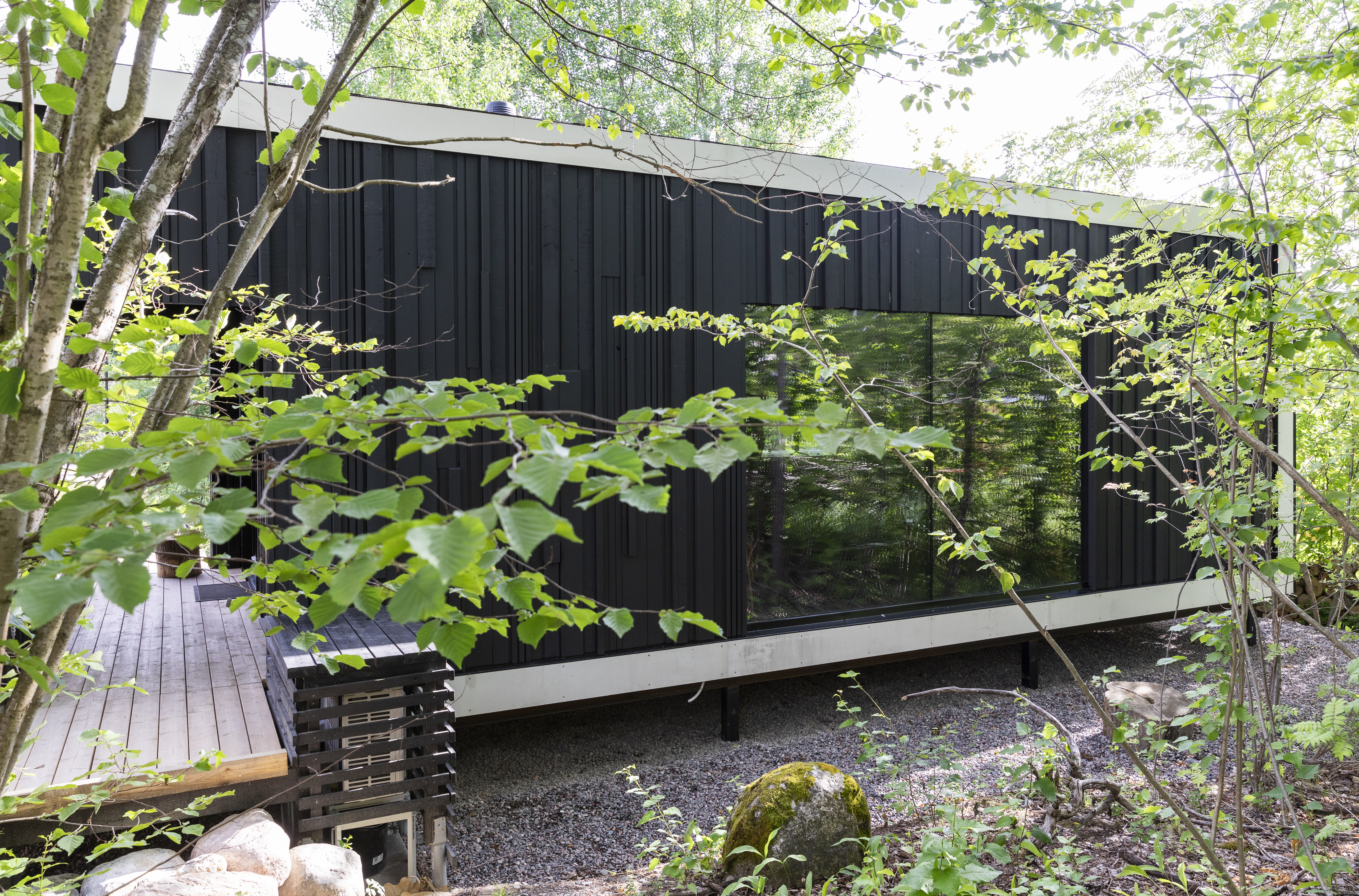 The project was a test case for industrial circular economy in the Finnish construction sector. Despite of political declarations, the Finnish construction sector is the most material intensive sector in the country, and Finland is the only EU country that has not yet reached EU´s minimum levels for the utilisation of construction and demolition waste. In this conservative context, we gathered a group of companies to work on the reassembly of discarded building products, and to develop new building products from waste and industrial side streams. The core skills were architecture, structural engineering, energy technology, chemistry, and photography. We developed completely new interior surfaces and products from recycled plastics and industrial side streams for the bathroom and kitchen. We applied for the first time fully fossil-free steel structures that were made 100% from recycled scrap and realised the first bitumen roofing made from old car tyres. We integrated art into the space-saving, transparent sliding doors by collaborating with a local award-winning nature photographer Heikki Willamo. We developed a new line of sliding doors that combine fossil-free frame, and door panel made either from recycled plastic, recycled sawdust and lignin resin, or glass with meditative black-and-white nature photos from the boreal forests. These became possible by bringing various disciplines and companies together, it was a creative snow-balling process that yielded positive surprises.