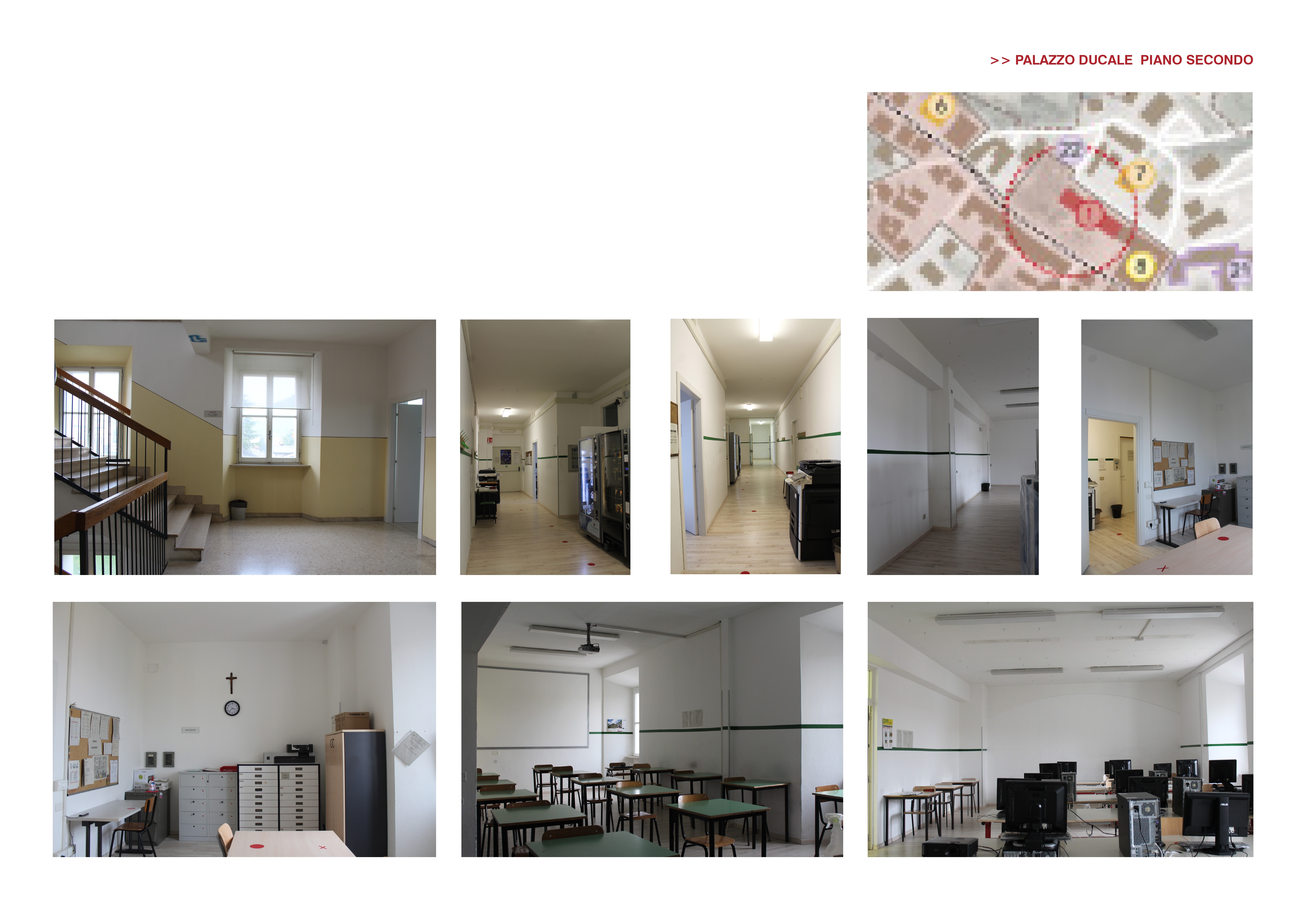 The intervention concerns the renovation and re-functionalization of the abandoned parts of Palazzo Ducale. The physical intervention of the proposal aims to redevelop the internal spaces (ground floor + 3 floors) and the public space in front of it. Overall, the building presents very diversified situations inside it, both in terms of use and construction. The intervention as a whole is expressed through the use of materials and techniques (in reference to the CAM - Minimum Environmental Criteria, as part of the National Strategy for Circular Economy) attentive to health, environment and safety. The GBC protocol is intended for the design. An agreement will be signed with the certifying bodies.