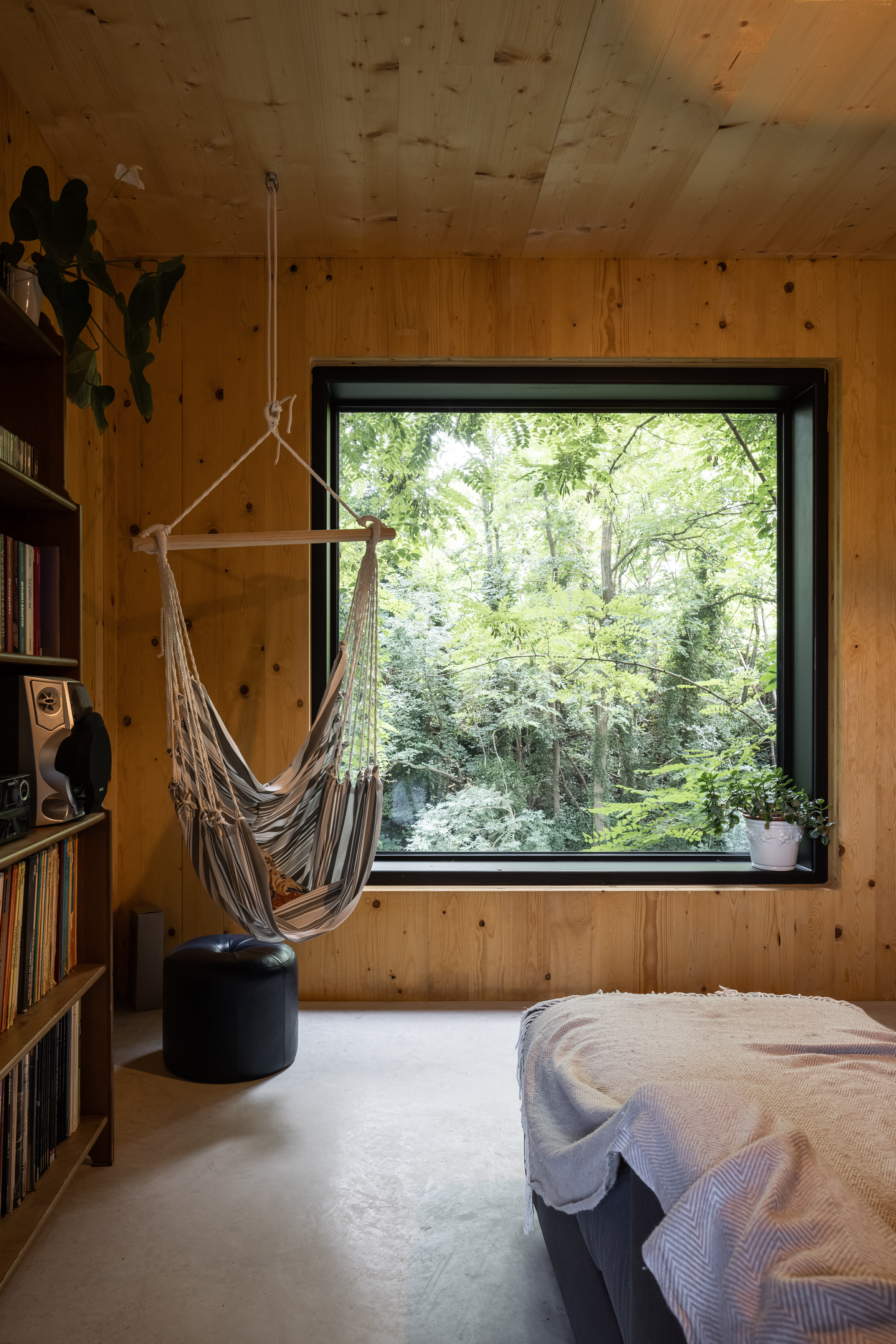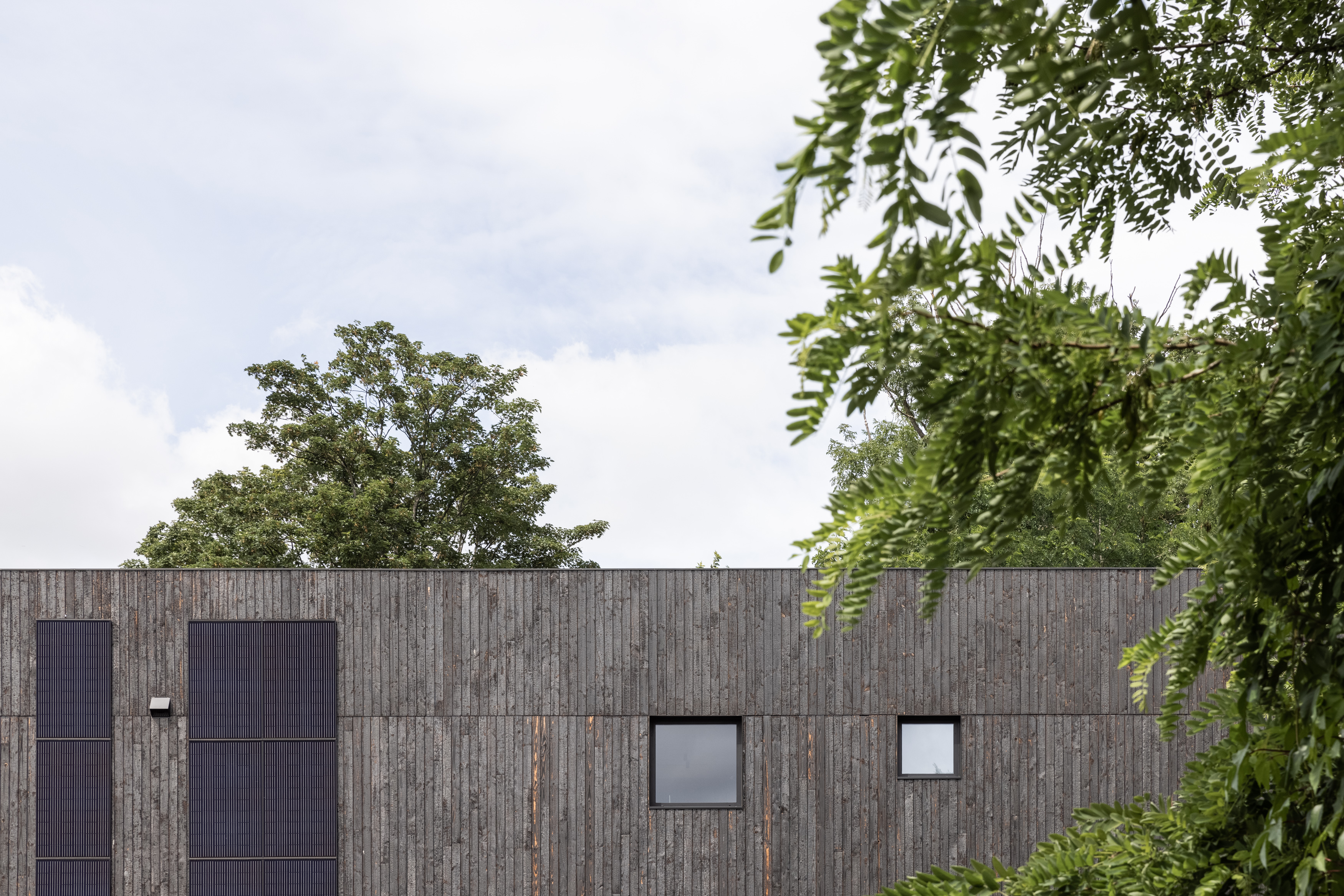 The project uses cross-laminated timber (CLT), a sustainable material with a low environmental impact. CLT improves insulation and energy efficiency. Combined with solar panels, green roofs, and rainwater harvesting, this approach minimizes the carbon footprint and ensures long-term energy efficiency.
