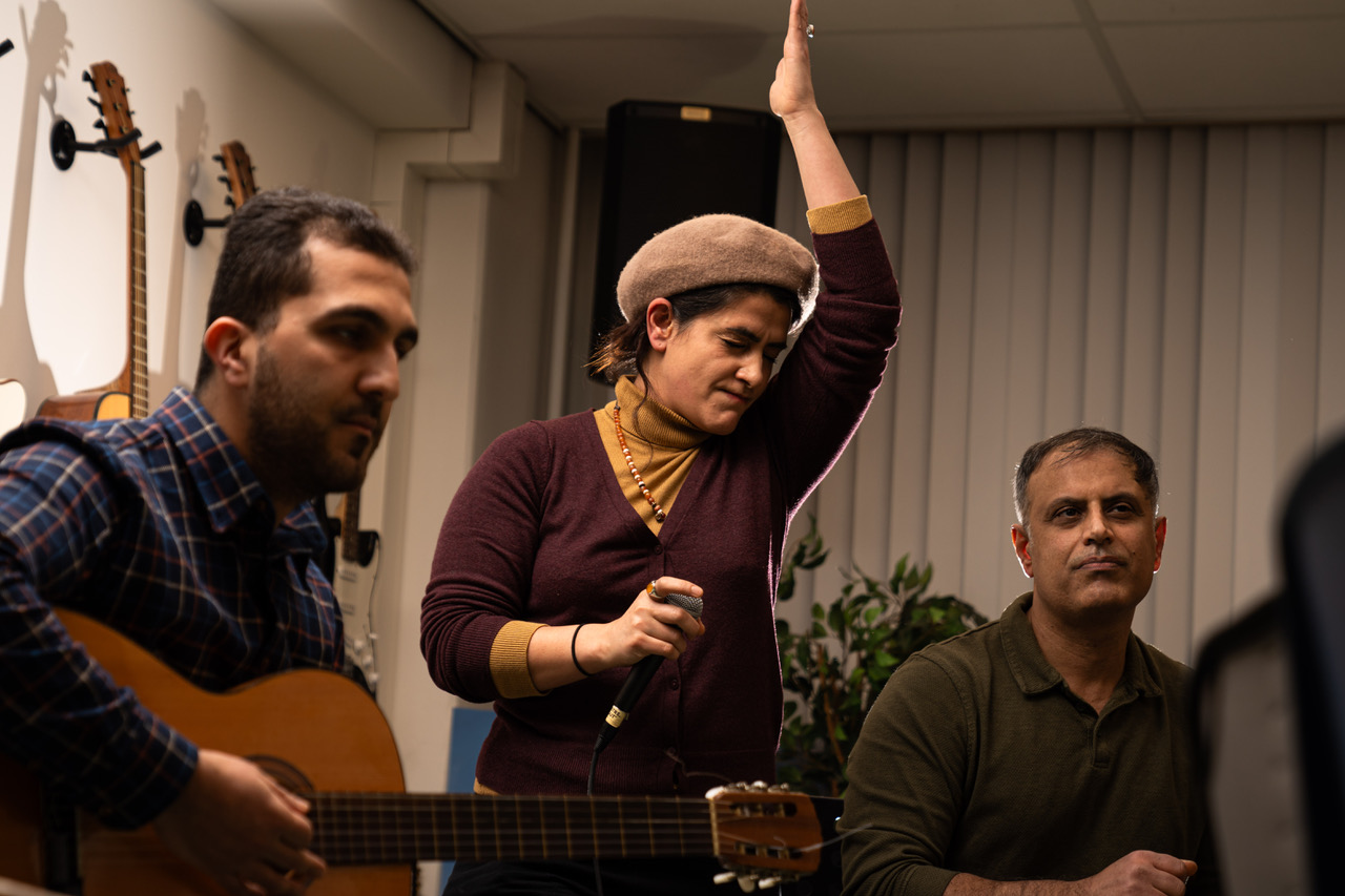 Alkistis Misouli and Friends‘s workshop/jam sessions in Dutch refugee centers offer residents an opportunity to share music from their own cultures, creating connection without a common language.